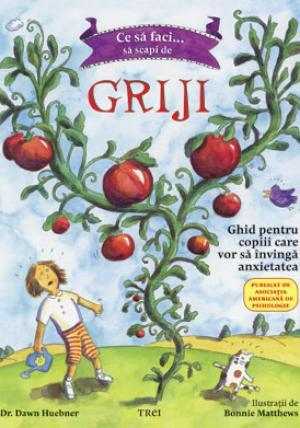 Ştiai că grijile sunt la fel ca roşiile? Nu, nu se pot mânca. Dar le poţi face să crească pur şi simplu dacă le acorzi atenţie. În cazul în care îngrijorarea a crescut atât de mult încât îţi dă bătăi de cap aproape în fiecare zi, atunci cartea Ce să faci… să scapi de griji. Ghid pentru copiii care vor să învingă anxietatea, de la Editura Trei, este perfectă! Acest ghid practic dedicat copiilor cu vârste între 6 şi 12 ani, care au probleme de anxietate şi părinţilor acestora este însoţit de explicaţii şi ilustraţii pe gustul celor mici, concepute astfel încât ei să-şi înţeleagă problemele şi să se implice activ în rezolvarea acestora. Grijile le sunt prezentate copiilor ca fiind nişte duşmani care pot fi învinşi dacă se urmează consecvent anumiţi paşi şi anumite trucuri. Se creează, de exemplu, în intervalul unei zile un anume „timp destinat grijilor”. Trucuri de acest fel şi multe altele sunt elementele-cheie pentru o confruntare eficientă a copiilor şi părinţilor cu problema anxietăţii la vârste fragede. Dr. Dawn Huebner este psiholog clinician în Exeter, New Hampshire, specializată în tratarea copiilor şi a părinţilor lor.