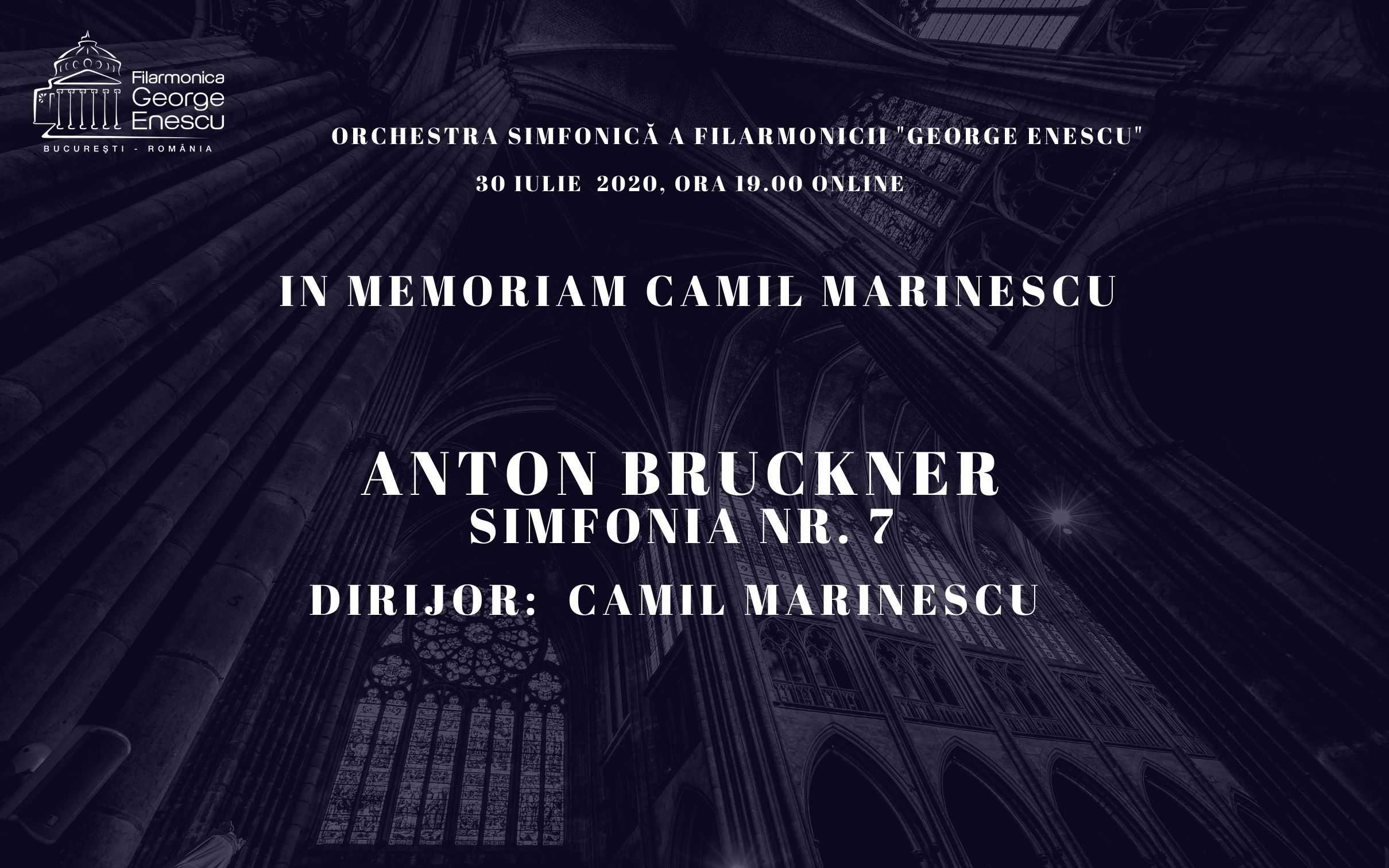 Filarmonica „George Enescu“ îi dedică memoriei lui Camil Marinescu (1964-2020) înregistrarea concertului de joi, 30 iulie 2020, de la ora 19.00, care va avea în program Simfonia nr. 7 în mi major de Anton Bruckner. Lucrarea este interpretată de Orchestra Filarmonicii „George Enescu“, condusă de Camil Marinescu, dirijor permanent al instituției în perioada 2012-2019. Artistul a murit pe 27 iulie 2020, la vârsta de 55 de ani. „Intelectual autentic și om de caracter, Camil Marinescu lasă posterității o operă muzicală foarte apreciată, alături de amintirea unei personalități complexe și respectate. Dirijor talentat, unul dintre ce mai remarcabili din generația sa, maestrul Camil Marinescu și-a conturat și o rarisimă vocație de pedagog, exersată în consacrate centre muzicale de pretutindeni. Pentru lumea muzicală, dispariția sa este o pierdere pe care o vom resimți încă mult timp“, declară Andrei Dimitriu, directorul Filarmonicii „George Enescu“.