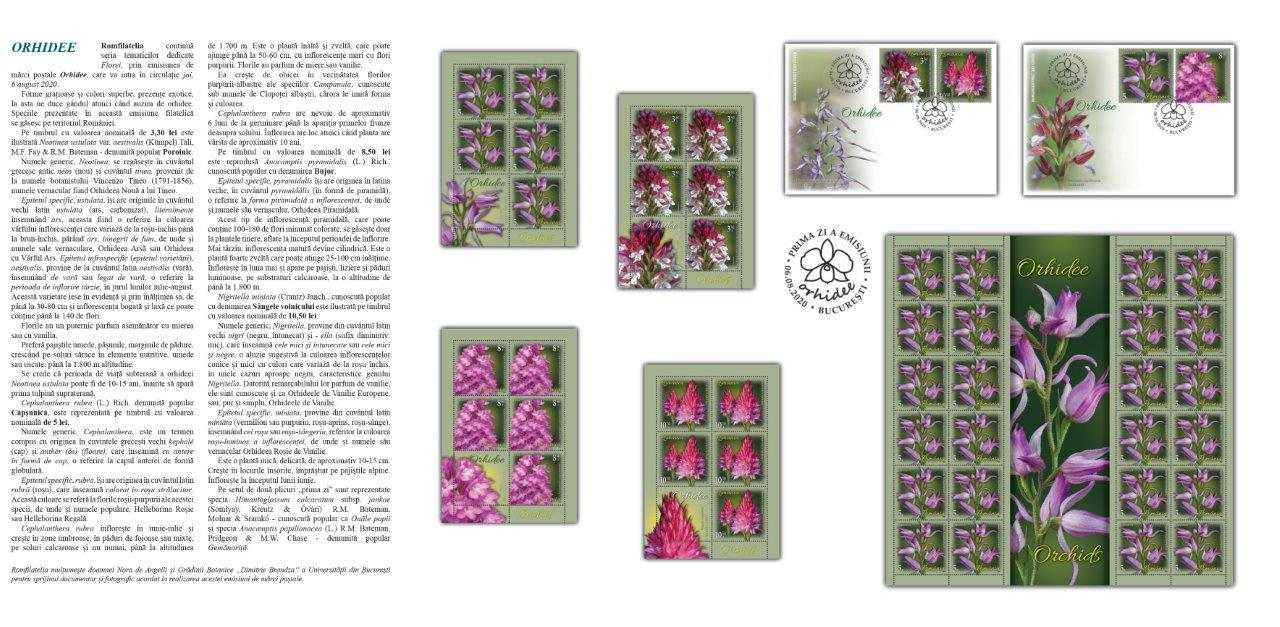 Romfilatelia continuă seria tematicilor dedicate Florei, prin emisiunea de mărci poștale Orhidee, care va intra în circulație joi, 6 august 2020. Forme grațioase și culori superbe, prezențe exotice, la asta ne duce gândul atunci când auzim de orhidee. Speciile prezentate în această emisiune filatelică se găsesc pe teritoriul României.
