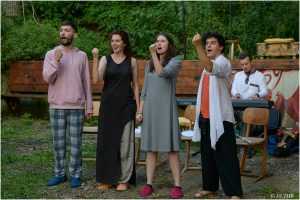 Spectacolul „Despre ce vorbim când cântăm despre iubire?” coordonat de Adrian Sitaru, Ioana Flora și Luiza Zan pentru șase actori/ muzicieni, a fost programat luni la Viscri și miercuri la Biertan, în grădina Pensiunii Unglerus – unde va avea loc sâmbătă, conform tradiției, concertul de jazz cu Ana Cristina Leonte, Albert Tajti – pian și Ciprian Pop – chitară, alături de tinerii veniți să își perfecționeze stilul de jazz aici.