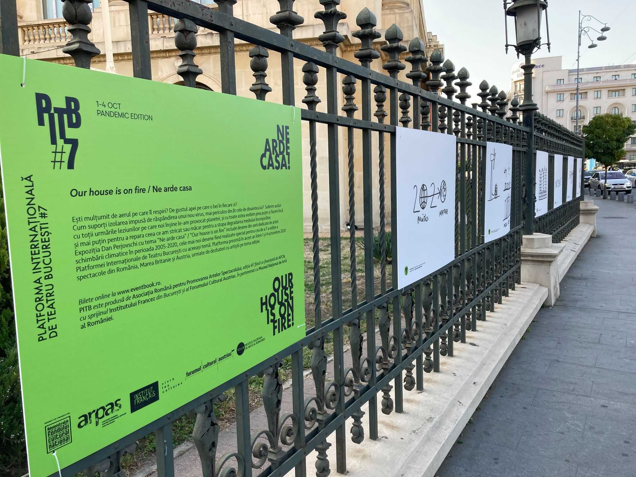 Desenele lui Dan Perjovschi sunt excepționale avertismente artistico-politice ce iau pulsul și oglindesc societatea actuală, cu tulburările, dezechilibrele, stringențele ei. Platforma Internațională de Teatru București #7 include, ca preambul la derularea efectivă a programului de spectacole între 1 și 4 octombrie 2020, o expoziție în aer liber ce prezintă publicului bucureștean o selecție din seria “Climate, Planet, City and Greta series 2005-2020”, cele mai noi fiind desenate special pentru PITB#7.