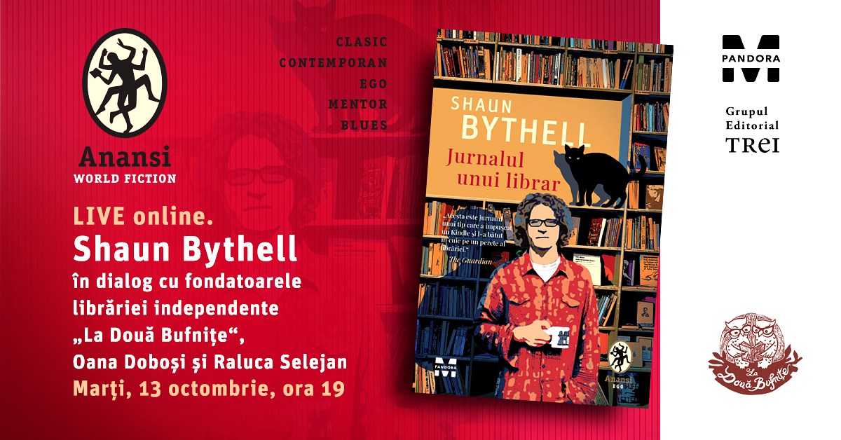 Cu o zi înainte de debutul ediției din acest an a Târgului de Carte de la Frankfurt, marți, 13 octombrie 2020, cel mai cunoscut librar-anticar din Scoția, Shaun Bythell, va intra într-un dialog LIVE online cu fondatoarele librăriei independente „La Două Bufnițe”, Oana Doboși și Raluca Selejan. Evenimentul va avea loc începând cu ora 19.00 și va fi transmis LIVE pe paginile de Facebook https://www.facebook.com/ladouabufnite și https://www.facebook.com/anansi.worldfiction.