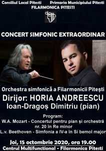 Concertul din 15 octombrie îl va avea ca solist pe tânărul pianist Ioan Dragoş Dimitriu, iar programul va cuprinde lucrări reprezentative ale clasicismului, precum Divertismentul KV 138 în fa major şi Concertul pentru pian și orchestră nr. 20 în re minor KV 466 de W.A. Mozart şi Simfonia a IV-a, în Si bemol major, op. 60 de Beethoven.