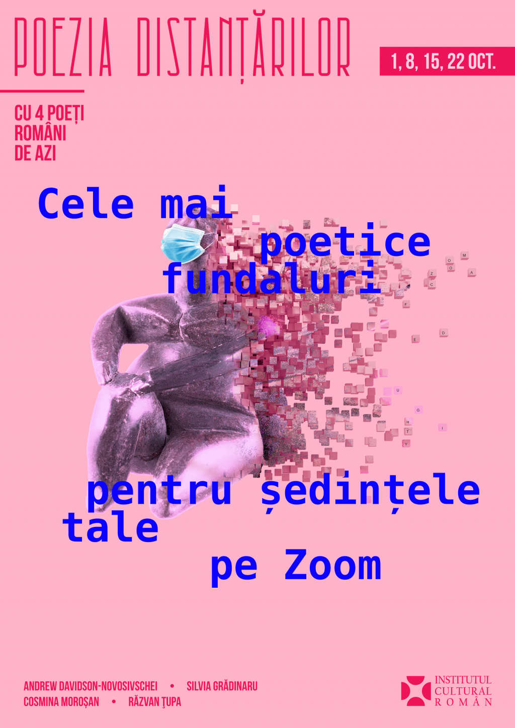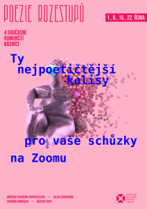 “Poezia distanțărilor cu 4 poeți români de azi” propune cele mai poetice fundaluri pentru ședințele pe Zoom, transmise pe pagina de Facebook a ICR la Praga în fiecare zi de joi, în perioada 1- 22 octombrie 2020.