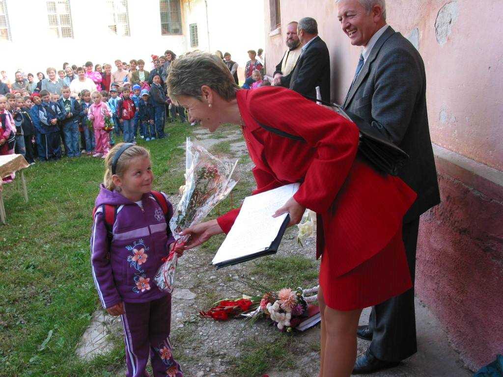 …Părintele a ţinut o rugă pentru sat, pentra ţară, pentru locuitorii văzduhului, pentru roadele pământului şi pentru mântuire. Cu capul plecat, privindu-şi bucheţelele de flori din mâini, copiii stau nemişcaţi în mici şiruri de câte 8-12 elevi, în funcţie de clase. În curtea şcolii, s-au instalat solemn tăcerea şi ruga. Este 1 octombrie, iar la Loman, judeţul Alba, a început festivitatea de deschidere a şcolii. Munţii Şureanu şi Cândrel fac complice cu ochiul către micuţii lor pieteni de peste vară.