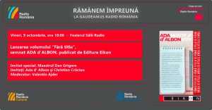 Radio România vă invită să vă alăturați unui nou proiect din seria Gaudeamus, care va debuta vineri, 9 octombrie 2020, la ora 18.00, în foaierul Sălii Radio: „Rămânem împreună la Gaudeamus Radio România!”. Seria evenimentelor editoriale inițate sub acest nume de postul public de radio, va fi deschisă de lansarea volumului „Fără titlu!”, semnat Ada d‘Albon, publicat de editura Eikon, lansare care îl va avea ca invitat special pe maestrul Dan Grigore, unul dintre protagoniștii romanului.