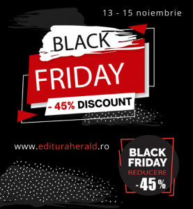 Pentru că #BlackFriday reprezintă pentru iubitorii de cărți cea mai bună ocazie pentru a-și îmbogăți biblioteca cu titlurile preferate sau cu cele mai noi apariții, între 13 și 15 noiembrie 2020, Editura Herald va oferi un discount de 45% la toate cărțile, pe www.edituraherald.ro.