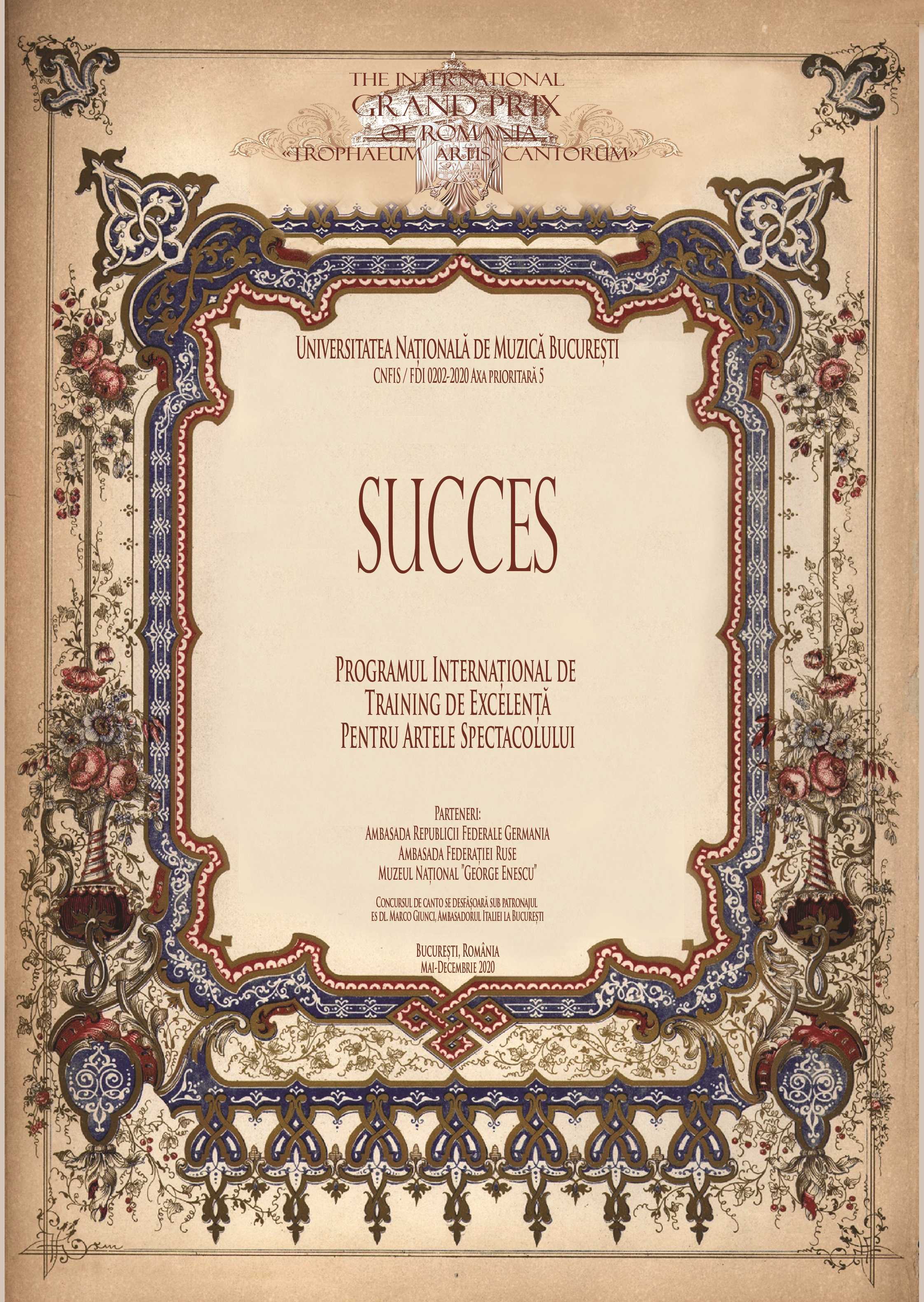 Proiectul SUCCES 2020 al Universităţii Naționale de Muzică București a fost finalizat în luna decembrie 2020, integrând pentru prima dată în mod consistent aspectul online în ambele sale componente, întrepătrunse și complementare: educațională (cursuri, workshop-uri, sesiuni de training, masterclasses, conferințe) și artistică (concurs și audiție).
