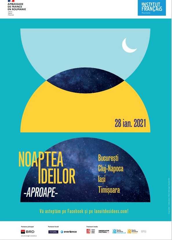 Pe 28 ianuarie 2021, Institutul Francez din România participă la cea de-a şasea ediţie a Nopţii Ideilor, un eveniment internaţional organizat de Institutul Francez de la Paris pe cinci continente, în 75 de ţări. Evenimente reunite în jurul temei principale a acestei ediţii – APROAPE – vor avea loc online la Bucureşti, Cluj-Napoca, Iaşi şi Timişoara. În contextul pandemiei de COVID-19, tema din acest an a fost aleasă pentru a observa cum se transformă ideea noastră de spaţiu şi mobilitate, cum se formează noile solidarităţi pe care criza modelelor noastre economice şi sociale le-a creat, dar şi locul digitalului în viaţa de zi cu zi care probabil va schimba societatea pe termen lung.