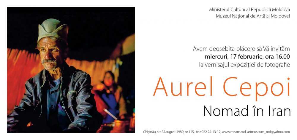 Miercuri, 17 februarie 2021, la ora 16.00, la Muzeul Național de Artă al Moldovei (strada 31 august 1989, nr.115) din Chișinău, va avea loc lansarea expoziției de fotografii Nomad în Iran, de Aurel Cepoi. Expoziția vu dura până pe 7 martie și este cu vânzare. Sumele încasate vor fi donate Centrului Tony Hawks din Chișinău. Evenimentul este prilejuită de apariția albumului The Last and the Lost, care poate fi găsit în toate librăriile bune din Republica Moldova. Alături de Aurel Cepoi, vor participa: Tudor Zbârnea, directorul Muzeului Național de Artă al Moldovei; Nicolae Pojoga, fotograf; Gheorghe Erizanu, editor.