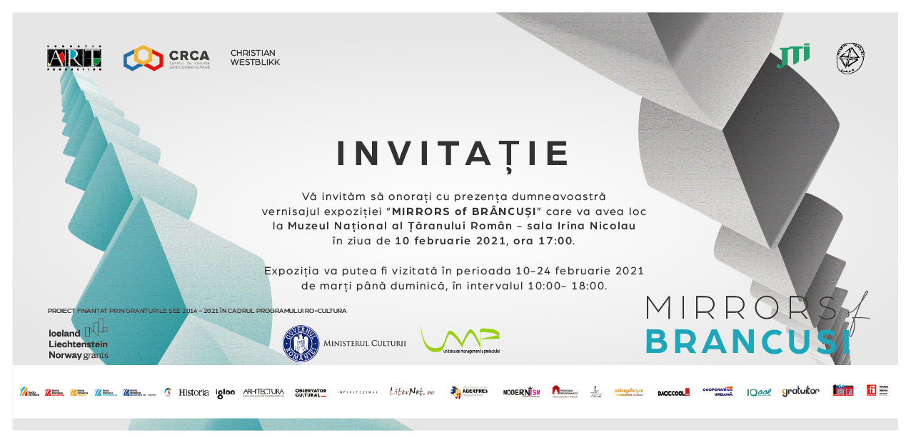 Mirrors of Brâncuși este un proiect organizat de Fundația Art Production, Centrul de Resurse pentru Cetățenie Activă și Christian Westblink, cu sprijinul JTI și Muzeul Național al Țăranului Român.