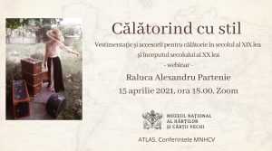 Joi, 15 aprilie 2021, ora 18:00, Muzeul Hărților vă invită la webinarul „Călătorind cu stil. Vestimentație și accesorii pentru călătorie în secolul al XIX-lea și începutul secolului al XX-lea”, susținut de drd. Raluca Alexandru Partenie. Într-o epocă în care eticheta vestimentară era esențială, ne întrebăm cum se îmbrăcau oamenii atunci când călătoreau, sau cum preferau să călătorească? În cadrul conferinței online „Călătorind cu stil” ne vom îmbarca într-un voiaj virtual prin secolul al XIX-lea și Belle Epoque și vom discuta despre ținutele de drum, despre exigențele și necesitățile vestimentare ale situației date, despre bunele maniere în călătorie, dar și despre bagaje – ce cufere și valize erau folosite, cum erau lucrurile împachetate pentru a nu se strica sau pentru a nu se șifona – totul exemplificat în imagini. Așadar, cu un imaginar tren, vapor sau chiar balon cu aer cald, vă așteptăm în călătoria noastră să străbatem meridianele modei din trecut! Evenimentul este primul din acest an al seriei „Atlas. Conferințele MNHCV”. Webinariile se adresează publicului pasionat de aventura cunoașterii și descoperiri din domeniile istoriei, geografiei, istoriei artei, psihologiei, istoriei costumului etc. Le mulțumim partenerilor noștri ESRI ROMÂNIA, care fac posibilă realizarea acestor evenimente.