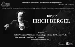 Vineri, 16 aprilie 2021, de la ora 19.00, Filarmonica „George Enescu” va transmite, pe canalele online, înregistrarea unui concert-eveniment cu valoare istorică, din 9 octombrie 1997, dirijat de marele dirijor de origine română Erich Bergel (1930-1998). Într-o serie de concerte de la începutul stagiunii 1997-1998, Erich Bergel a apărut pentru ultima dată pe scena Ateneului Român, cu numai câteva luni înainte de moartea sa, concerte care au rămas în memoria publicului drept unul din momentele de referință ale vieții muzicale de elită dintr-o lume populată de legende, care se îndrepta spre apus. Programul ales pentru această transmisie este alcătuit din Fantezia pe o temă de Thomas Tallis de Ralph Vaughan Williams și din Simfonia în re minor de César Franck.