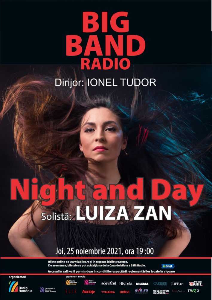 Primul concert de JAZZ pe scena Sălii Radio în această stagiune (2021-2022) este un eveniment special, pe care nu îl puteți rata! Joi, 25 noiembrie (de la 19.00), LUIZA ZAN – una dintre cele mai apreciate voci feminine din jazz-ul românesc la ora actuală – va cânta alături de BIG BAND-UL RADIO, dirijat de cunoscutul dirijor și compozitor IONEL TUDOR. Sugestiv intitulat „Night and Day” („Zi și noapte”), concertul este conceput cu prilejul lansării albumului omonim al artistei, CD realizat de Editura Casa Radio.