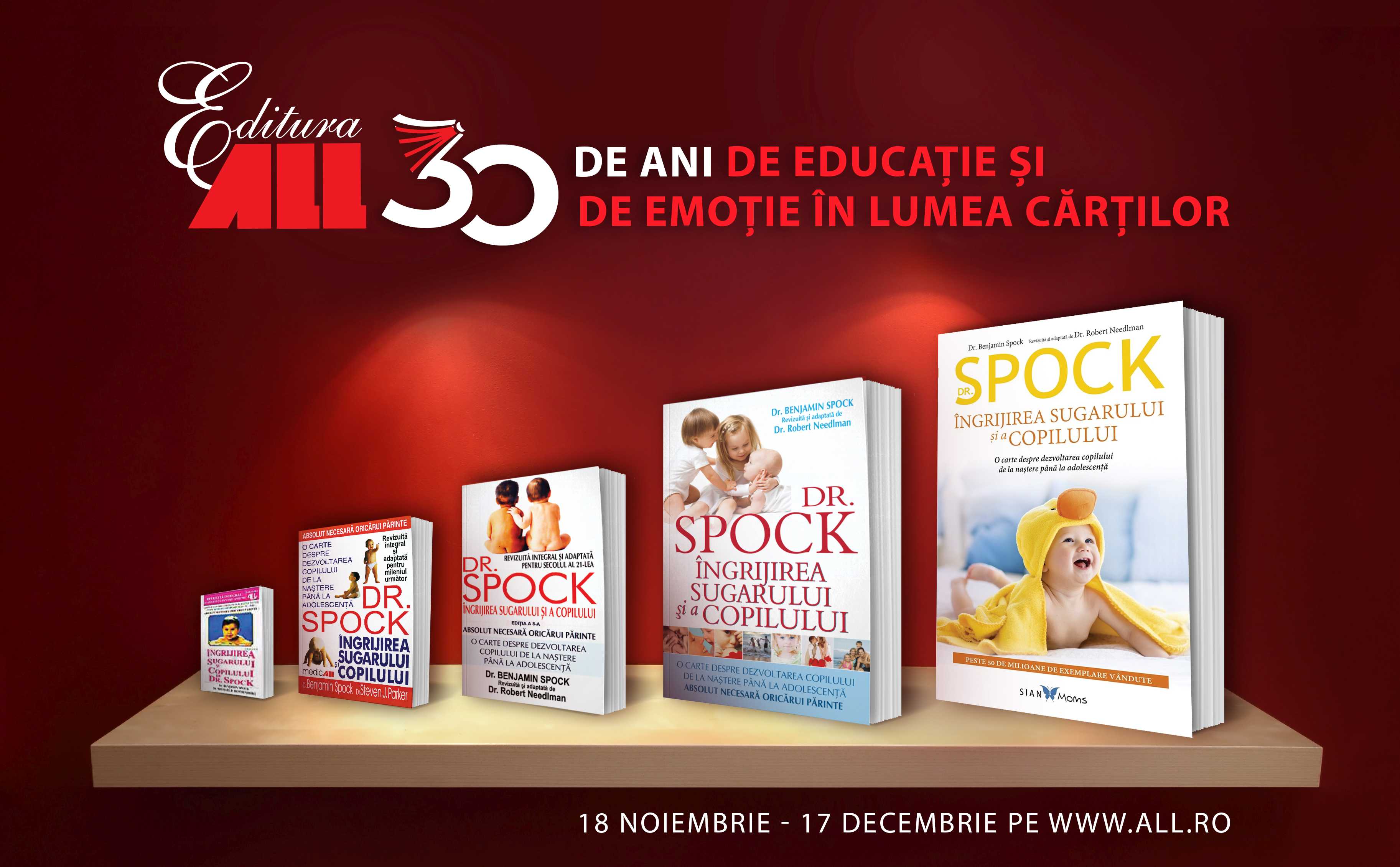 Dat fiind contextul actual, sărbătorim în mediul virtual primii 30 de ani de activitate. Timp de 30 de zile, în perioada 18 noiembrie – 17 decembrie 2021, cititorii noștri se vor putea bucura de o serie de oferte speciale, concursuri, cadouri și surprize pe www.all.ro și pe pagina oficială a editurii https://www.facebook.com/editura.all.
