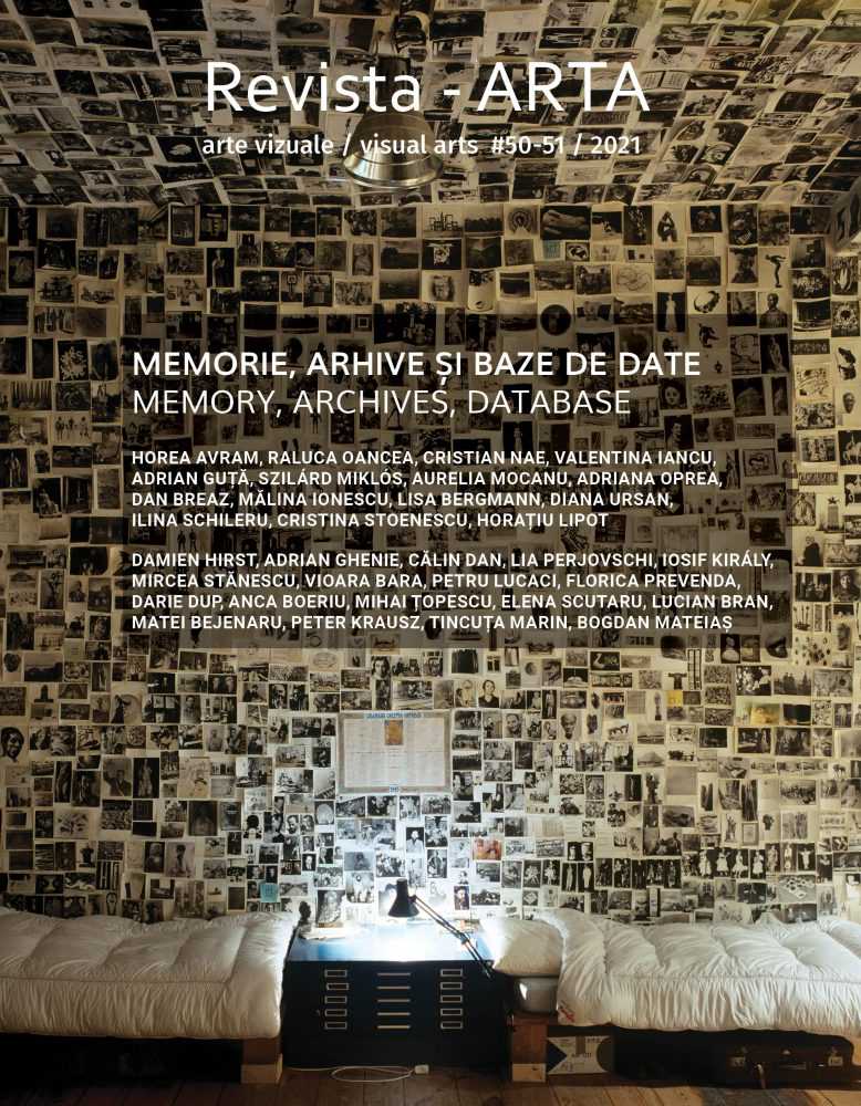Dosarul acestui număr dublu își propune o investigație asupra modului în care conceptele de memorie, arhivă și baze de date sunt abordate în arta vizuală în contextul importantelor mutații estetice recente precum abandonarea narativului liniar, disoluția genurilor, cultivarea inter-disciplinarității și inter-medialității. În paralel, dosarul sondează și interferențele dintre rolul artistului arhivist, respectiv cel al istoricului, al antropologului, al curatorului unei colecții. Contribuția dosarului – inevitabil parțială – la dezbaterea unui subiect extrem de vast urmărește întrebări precum: Ce presupune arhiva ca formă sau medium? Ce tip de privire (gaze) angajează memoria? Cum capătă actele de memorie și obiectele de arhivă o miză educațională, antropologică sau istorică? La ce se referă mult invocata transformare a „documentelor în monumente”(Foucault)? Coordonatorii dosarului sunt Horea Avram și Raluca Oancea.