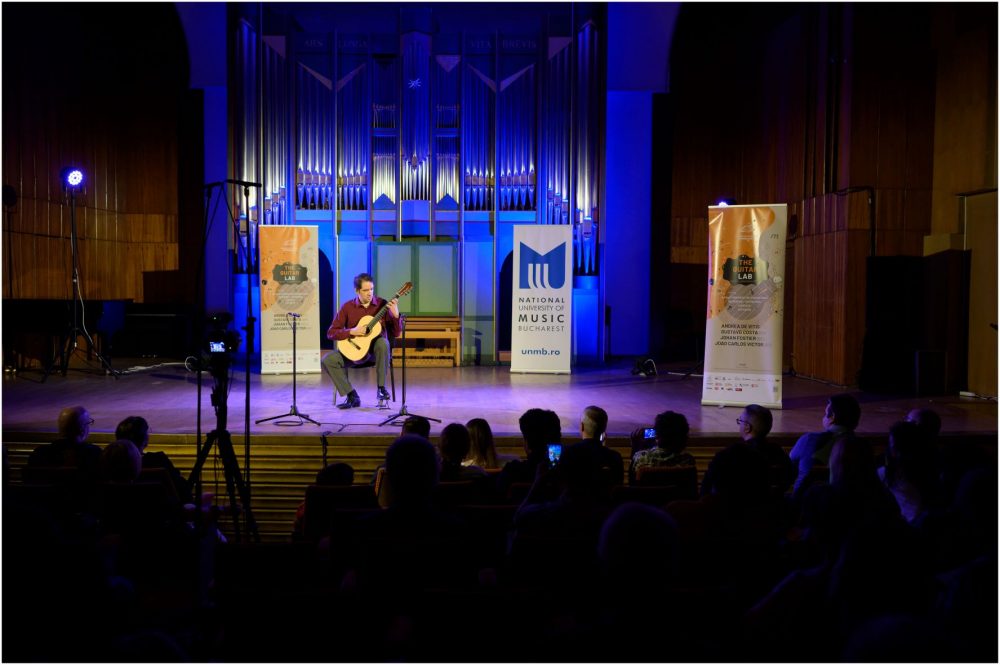 În paralel, The Guitar Lab a întrunit sufragiile tinerilor chitariști din toată țara, cei mai talentați dintre ei reușind să fie acceptați în postura de cursanți la masterclass-urile intensive ai căror protagoniști au fost chitariștii Andrea de Vitis și Gustavo Silveira Costa. De altfel, așa cum era de așteptat, conferințele, deosebit de atractive, ca și recitalurile memorabile ale celor doi minunați artiști au focalizat atenția publicului larg, sala „George Enescu” a Universității Naționale de Muzică devenind neîncăpătoare în ambele seri dedicate chitarei, ca instrument de concert. Și, la fel de important se dovedește a fi faptul că spectatorii au avut ocazia unică de a asculta lucrări valoroase, precum binecunoscuta Ciacconă a lui Johann Sebastian Bach sau splendidul lied schubertian Der Leiermann din metaforicul ciclu Winterreise, interpretate ori acompaniate la instrumente cu particularități speciale – chitara lui Andrea de Vitis, construită, în anii ’60, de către lutierul lui Andrés Segovia, Hermann Hauser, și, respectiv, o delicată terz-guitar de la început de secol XX aparținând lui Costin Soare, care evocă sonor celebrele chitare vieneze Staufer din prima jumătate a secolului al XIX-lea și, implicit, însuși instrumentul la care cânta, ocazional, Franz Schubert.