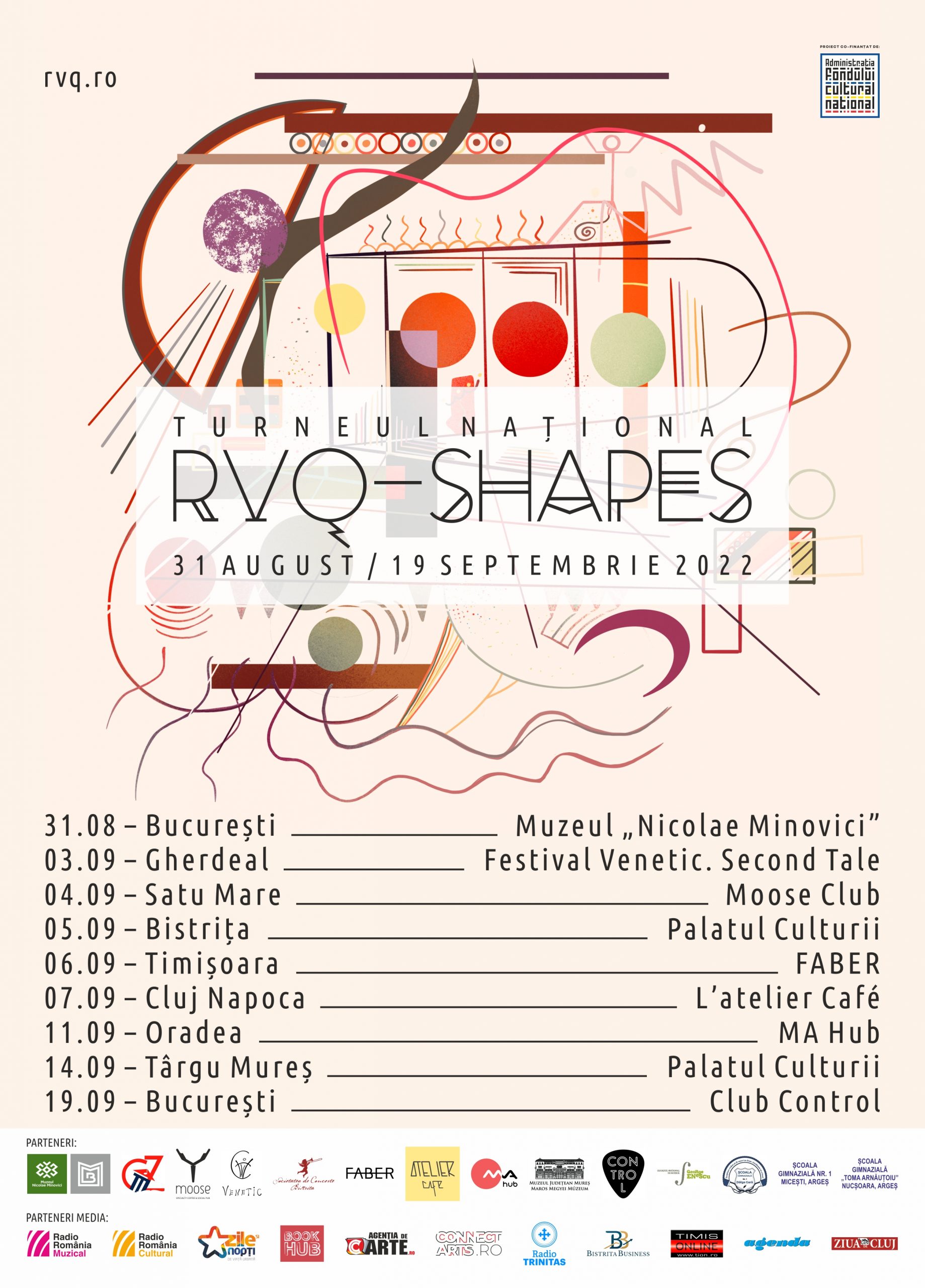 „RVQ – Shapes” este un proiect cultural co-finanțat de Administraţia Fondului Cultural Naţional (AFCN), bucurându-se de parteneri precum Muzeul „Nicolae Minovici” din București, Venetic Fest Gherdeal, Societatea de Concerte Bistrița, Faber Timișoara, Atelier Cafe Cluj Napoca, MA Hub Oradea, Palatul Culturii Târgu Mureș, Control Club București, Colegiul Național de Muzică „George Enescu” București, Școala Gimnazială Nr. 1 Dâlga Gară – jud. Călărași, Școala Gimnazială nr. 1 Micești – jud. Argeș și Școala Gimnazială „Toma Arnăuțoiu” Nucșoara – jud. Argeș, Radio România Muzical, Radio România Cultural, Zile și Nopți, BookHub, Agenția de cArte, ConnectArts, Radio Trinitas, Bistrița Business, Timiș Online, Ziua de Cluj.