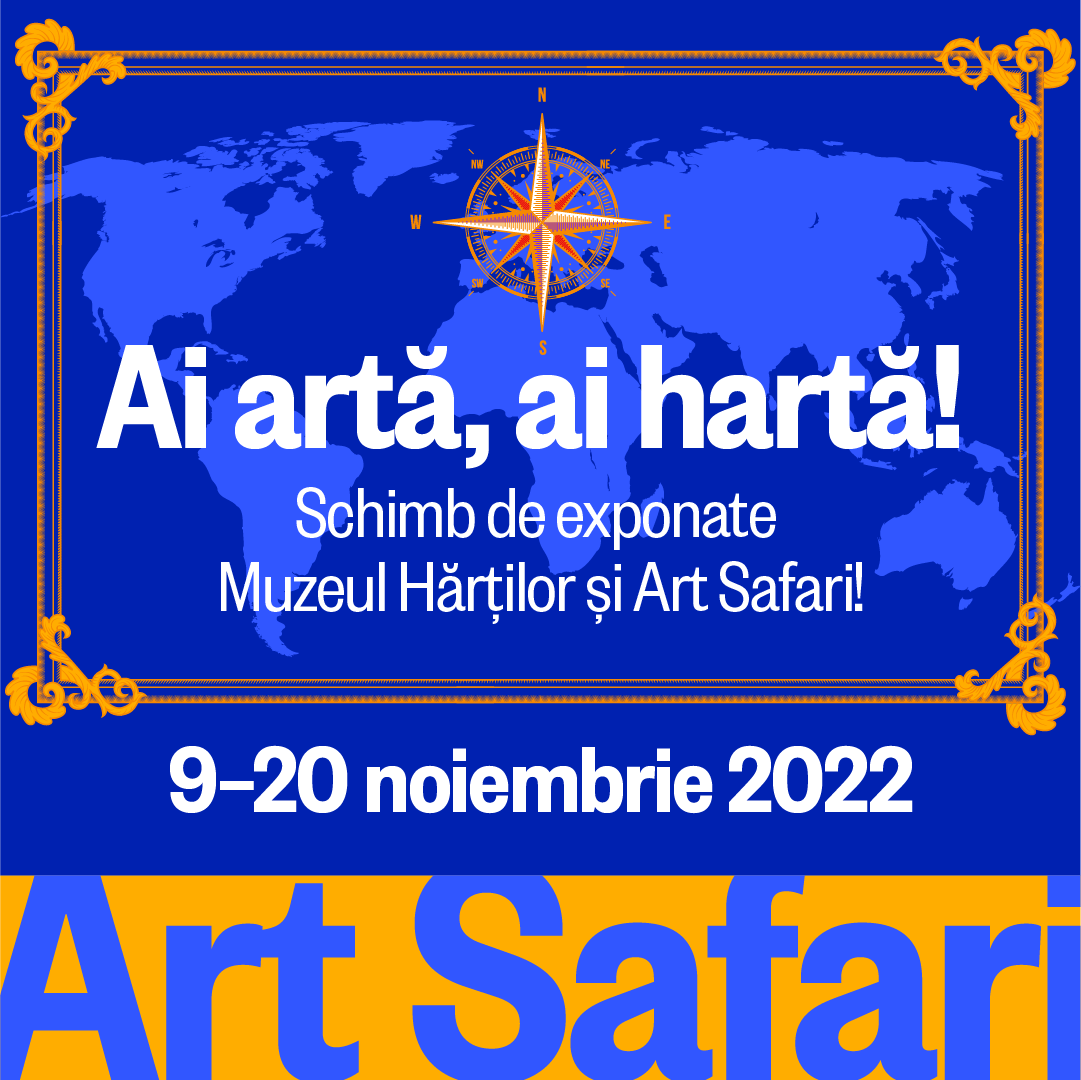Săptămâna aceasta se deschid publicului două expoziții simultane marca Art Safari și Muzeul Național al Hărților și Cărții Vechi, care pot fi vizitate până pe 20 noiembrie 2022; La Art Safari, în Palatul Dacia-România, din strada Lipscani nr. 18-20, pot fi văzute începând de joi, 10 noiembrie2022, hărți spectaculoase care spun povești și arată traseul pictorului-călător al artei românești, Ștefan Popescu, prin Franța și în Orient. Dar și hărți din Transilvania, într-o scenografie specială printre opere de artă și instalații imersive; La Muzeul Hărților, pe strada Londra 39, Art Safari organizează o expoziție temporară cu lucrări valoroase de Ștefan Popescu și artă contemporană semnată de artistul clujean Mihai Mureșan; Biletele pot fi achiziționate online pe site-ul Art Safari. Un bilet, două muzee: biletul Art Safari oferă acces și la Muzeul Hărților.