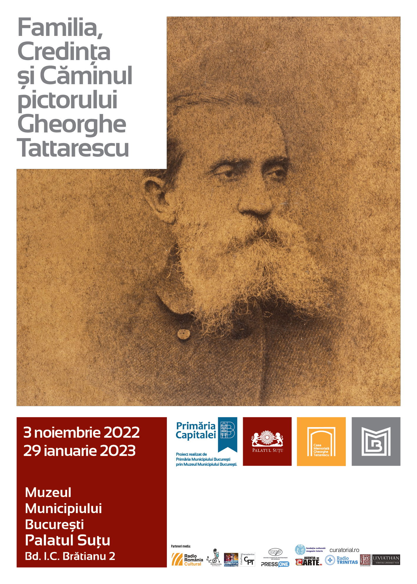 Muzeul Municipiului București invită iubitorii de artă la vernisajul expoziției „Familia, Credința și Căminul pictorului Gheorghe Tattarescu”, eveniment care va avea loc joi, 3 noiembrie, la Palatul Suțu (Bdul Ion C. Brătianu, nr 2), începând cu ora 17.00. După întoarcerea de la studii din Italia (1845-1851), cea mai mare parte din activitatea artistică a lui Gheorghe Tattarescu și cea mai cunoscută a fost dedicată artei religioase, cu peste 50 de astfel de ansambluri picturale, maestrul dezvoltând un stil personal, între academismul italian şi iconografia tradiţională postbizantină. Această activitate îl va consacra drept cel mai important pictor muralist modern din țara noastră. Muzeul Municipiului București completează această imagine dezvăluind, prin expoziția „Familia, Credința și Căminul pictorului Gheorghe Tattarescu”, o latură a complexității vieții cotidiene a maestrului. Atât publicul, cât și specialiștii vor avea ocazia de a explora o filă din biografia artistului. AgențiadecArte.ro este partener media al evenimentului.