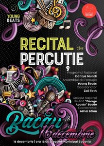 Pe 16 și 17 decembrie 2022, Programul Național ”Cantus Mundi” invită publicul din Bacău și București la Recitalurile extraordinare ale copiilor și tinerilor de la Secția de percuție Cantus Mundi, coordonată de cunoscutul muzician Zoli TOTH: Ansamblul de percuție Young Beats, fondat de Zoli TOTH și Ansamblul de percuție al Colegiului de arte „Gheorghe Apostu” din Bacău, coordonat de prof. Mihai Bălan. Recitalul ansamblurilor de percuție Cantus Mundi vor avea loc pe 16 decembrie, ora 16:00, la Teatrul Municipal Bacovia – Strada Nicolae Bălcescu, din Bacău, și pe 17 decembrie, ora 19:00, la Sala Gloria a Teatrului Metropolis – Strada Bucovina nr 6, sector 3, București. Accesul la spectacole este liber, cu rezervare pe platforma online Bilete.ro, la link https://s9.ro/1pl3.