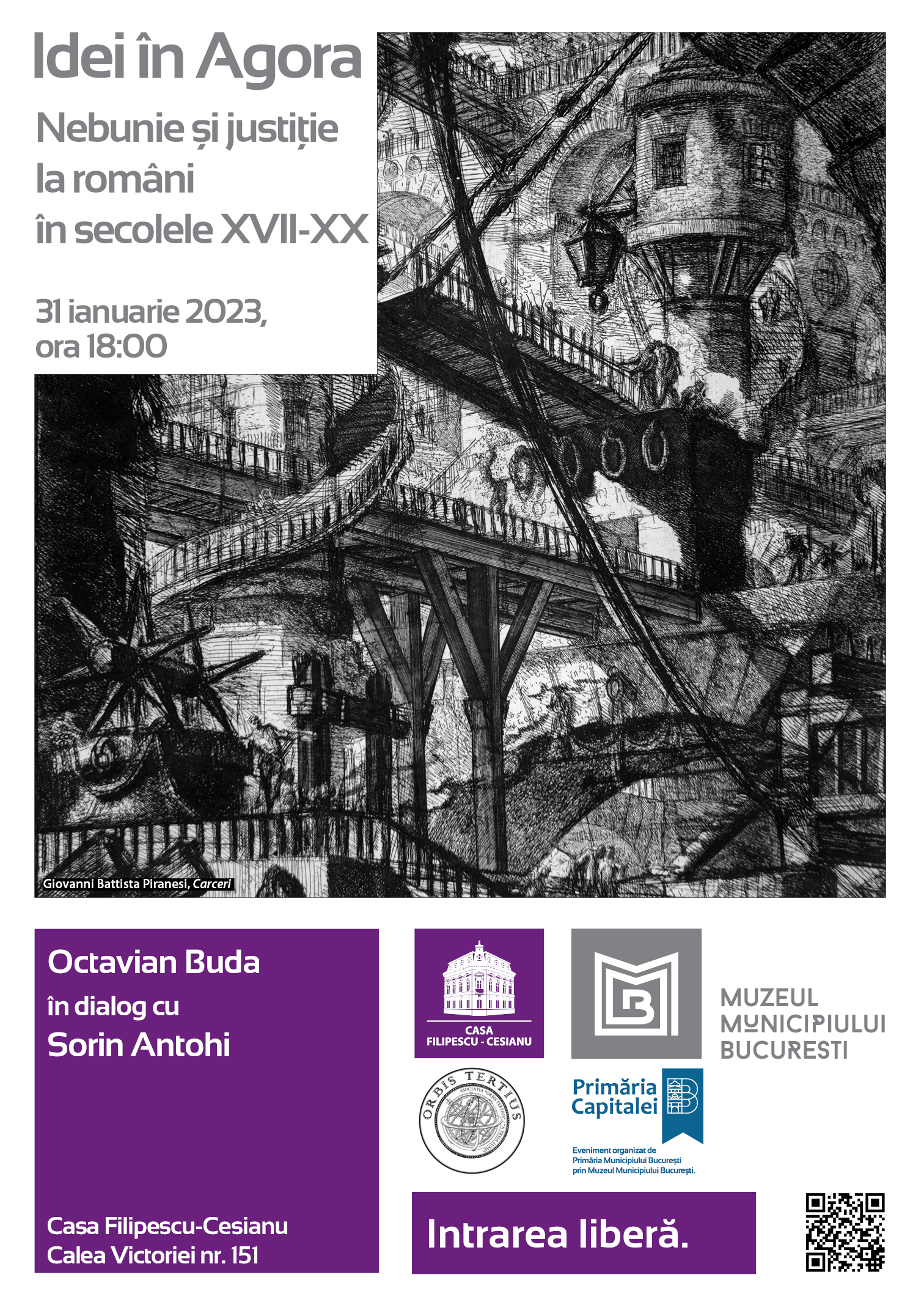 Muzeul Municipiului București invită publicul la ”Idei în Agora”, marți, 31 ianuarie 2023, ora 18.00. Întâlnirea va avea loc la Casa Filipescu-Cesianu (Calea Victoriei 151). Octavian Buda va fi în dialog cu Sorin Antohi, pe tema: „Nebunie și justiție la români în secolele XVII-XX”. Intrarea este liberă. „«Giudețul nebuniei» este o culegere de studii care conturează un fel de «Medical History of Crime» în societatea românească. O istorie văzută prin prisma psihiatrilor, medicilor legişti şi juriştilor care au încercat în contextul epocii să găsească explicaţiile (adesea inexplicabile!) ale criminalităţii, sub toate formele ei. Pentru că, aşa cum spunea în 1913 medicul legist francez Alexandre Lacassagne, «mediul social este bulionul de cultură al criminalităţii, iar microbul este criminalul, un element ce nu capătă importanţă decât în ziua în care găseşte bulionul pe care îl face să fermenteze»” – Octavian Buda.