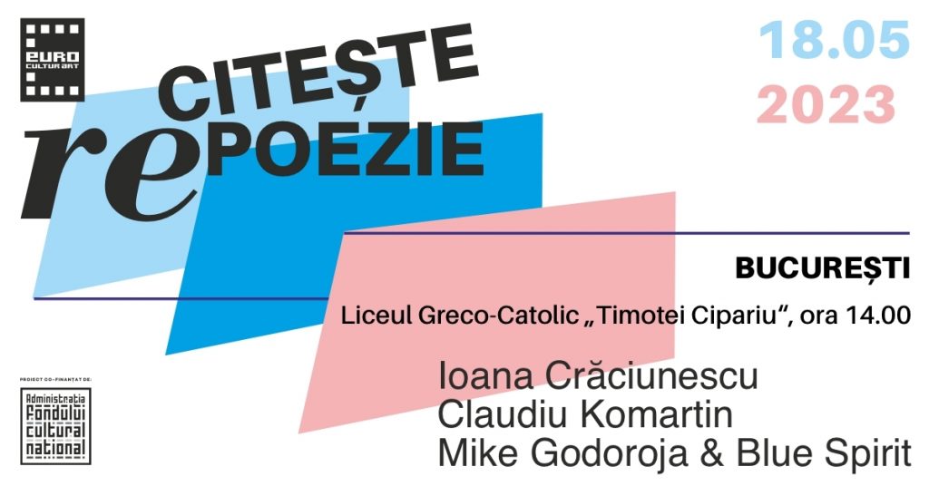Joi, 18 mai 2023, de la ora 14.00, la Liceul Greco-Catolic ”Timotei Cipariu”  din București, asociația Euro CulturArt, cu sprijinul financiar al AFCN (Administrația Fondului Cultural Național), a prezentat spectacolul de poezie și blues ”reCITEȘTE POEZIE”, unde au fost invitați să citească Ana Maria Olteanu, Maria Oprea, Andreea Ilinca Stancu și Ioana Maria Vasilescu, eleve ale Liceului Greco-Catolic ”Timotei Cipariu” care au participat la atelierele de lectură și scriere creative coordonate de Florin Iaru și Dan Mircea Cipariu. Atelierele și spectacolul de poezie și blues fac parte din proiectul de promovare a culturii scrise contemporane –  ”reCITEȘTE POEZIE” pentru liceenii din 5 zone din București cu acces limitat la cultură: Cartierul Dămăroaia, Cartierul Bucureștii Noi, Cartierul Chitila, Cartierul Crângași, Cartierul Pajura. Invitații speciali ai spectacolului sunt poeții Ioana Crăciunescu și Claudiu Komartin, alături de trupa Mike Godoroja & Blue Spirit.