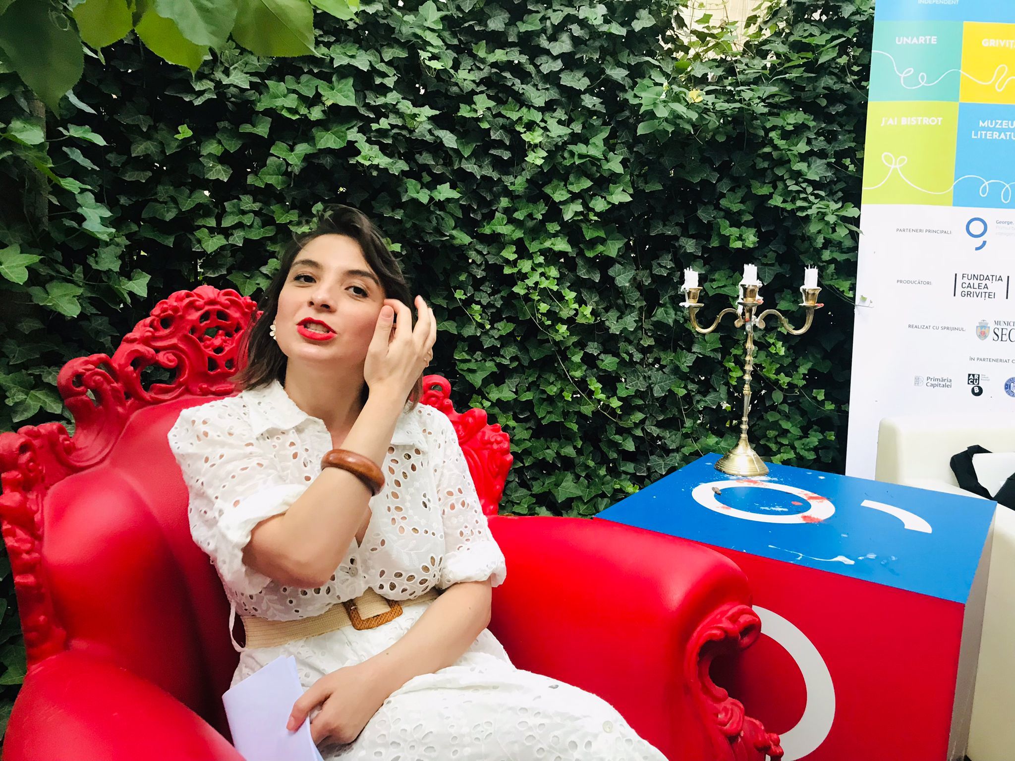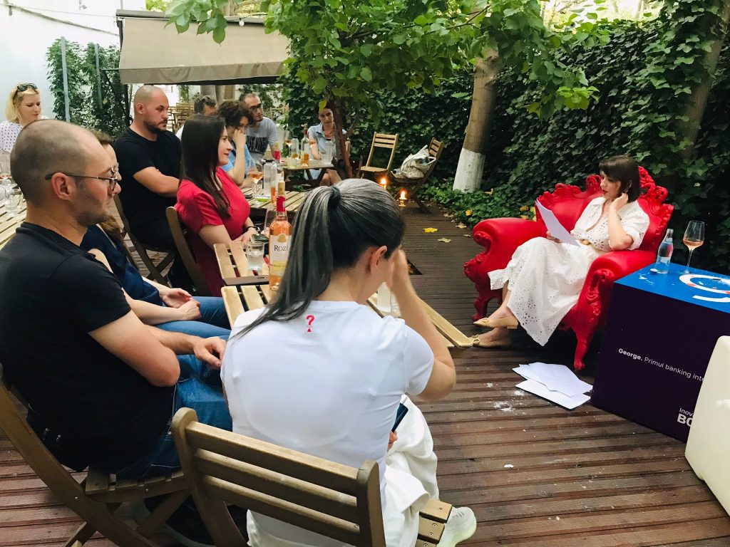 Rzana Mihalache: ”O să citesc ceva, ca de obicei, foarte personal. Mi s-a reproșat cumva că sunt prea personală. Am încercat să scriu altfel și nu mi-a ieșit. M-am simțit ca o impostoare. Așa că răbdați-mă și dacă nu mă răbdați, vinul e bun, o să fie mai ușor pe măsură ce trece.”