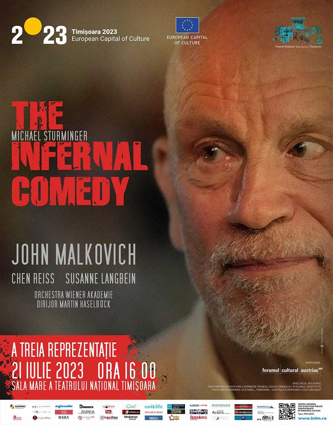 Ca urmare a interesului extraordinar pe care acest eveniment l-a suscitat în rândul publicului, Teatrul Național din Timișoara a suplimentat numărul de reprezentații. Așadar, spectacolul THE INFERNAL COMEDY va avea încă o reprezentație vineri, 21 iulie 2023, de la ora 16:00, în Sala Mare a Teatrului Național. Biletele se pun în vânzare începând de duminică, 2.07.2023, ora 11, atât pe www.tntm.ro cât și la Agenția de bilete „Mărășești”.