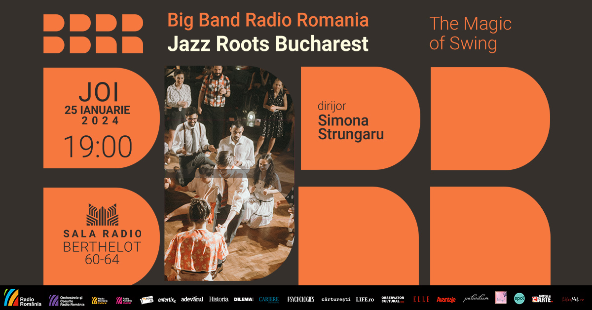 Joi, 25 ianuarie 2024 (19.00), Big Band-ul Radio și invitații săi – compania de dans Jazz Roots Bucharest – vă propun la Sala Radio o seară de muzică și dans, un eveniment plin de energie și de bucuria swing-ului! AgențiadecArte.ro este partener media al evenimentului.
