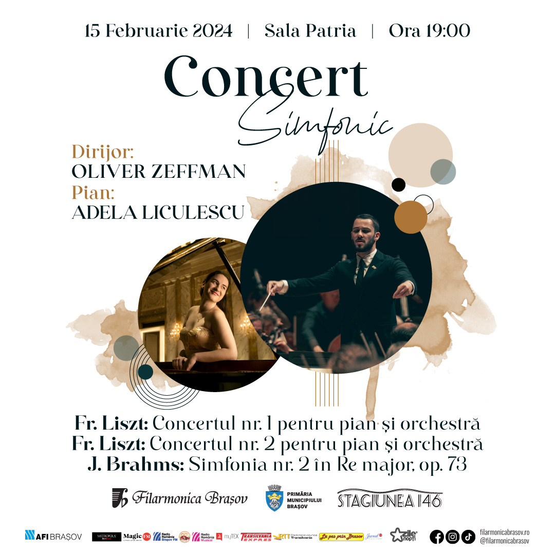 Filarmonica Brașov propune joi, 15 februarie 2024, de la ora 19:00 un eveniment muzical de excepție care îl va avea la pupitrul dirijoral pe maestrul Oliver Zeffman din Marea Britanie, alături de virtuoza pianistă Adela Liculescu, într-un program ce promite să fie una dintre cele mai memorabile seri muzicale ale anului.