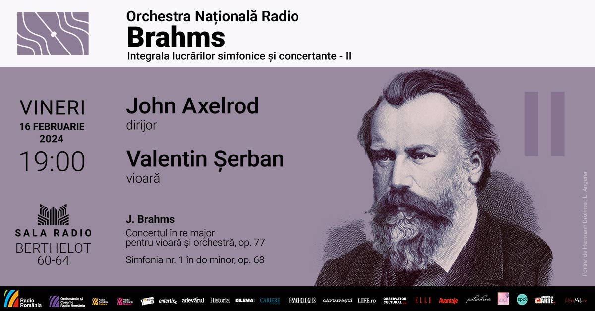 Vineri, 16 februarie 2024 (19.00), ORCHESTRA NAŢIONALĂ RADIO vă invită la Sala Radio la cel de-al doilea concert dintr-un „maraton artistic” dedicat unuia dintre cei mai mari compozitori germani: JOHANNES BRAHMS. Pe parcursul stagiunii 2023-2024, ansamblul Radio România prezintă Integrala lucrărilor simfonice și concertante semnate de Brahms, în cadrul a 4 concerte extraordinare, proiect conceput în jurul aniversării a 190 de ani de la nașterea compozitorului.
