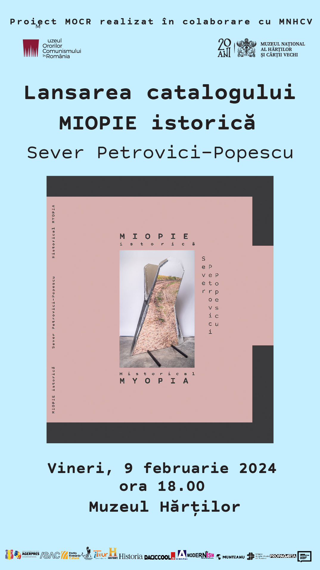 Cu ocazia finalizării expoziției „Miopie Istorică” a artistului Sever Petrovici POPESCU, curatoriată de Ioana MARINESCU și realizată de Muzeul Ororilor Comunismului în România (MOCR) în colaborare cu Muzeul Hărţilor, anunțăm vineri 9 februarie 2024, ora 18:00, lansarea catalogului care prezintă lucrările și studiile critice care contextualizează și dezbat opera artistului.