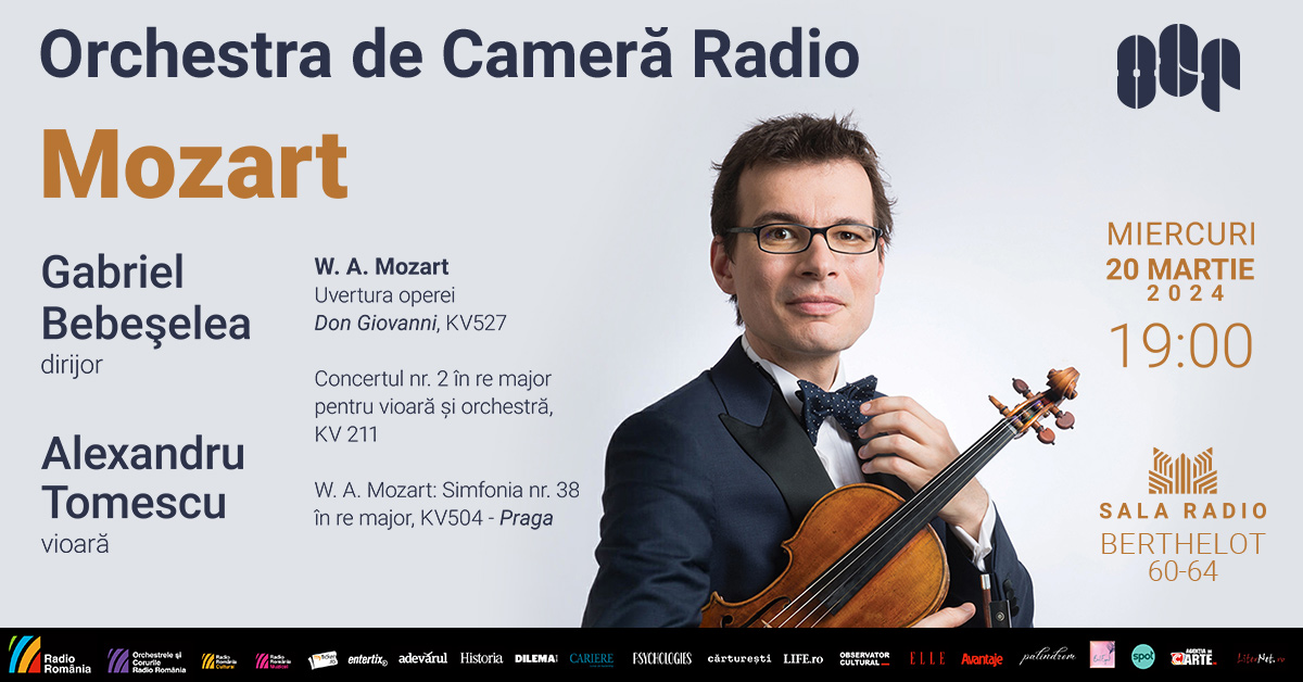 Miercuri, 20 martie 2024 (de la 19.00), concertul oferit de ORCHESTRA DE CAMERĂ RADIO prezintă publicului un repertoriu ce va cuprinde uvertura celebrei opere Don Giovanni, Concertul nr. 2 pentru vioară și orchestră și Simfonia nr. 38 – Praga, a cărei premieră absolută a avut loc în 1787, în capitala cehă, cu ocazia primei vizite făcute în oraș de Amadeus. AgențiadeCarte.ro este partener media al evenimentului.