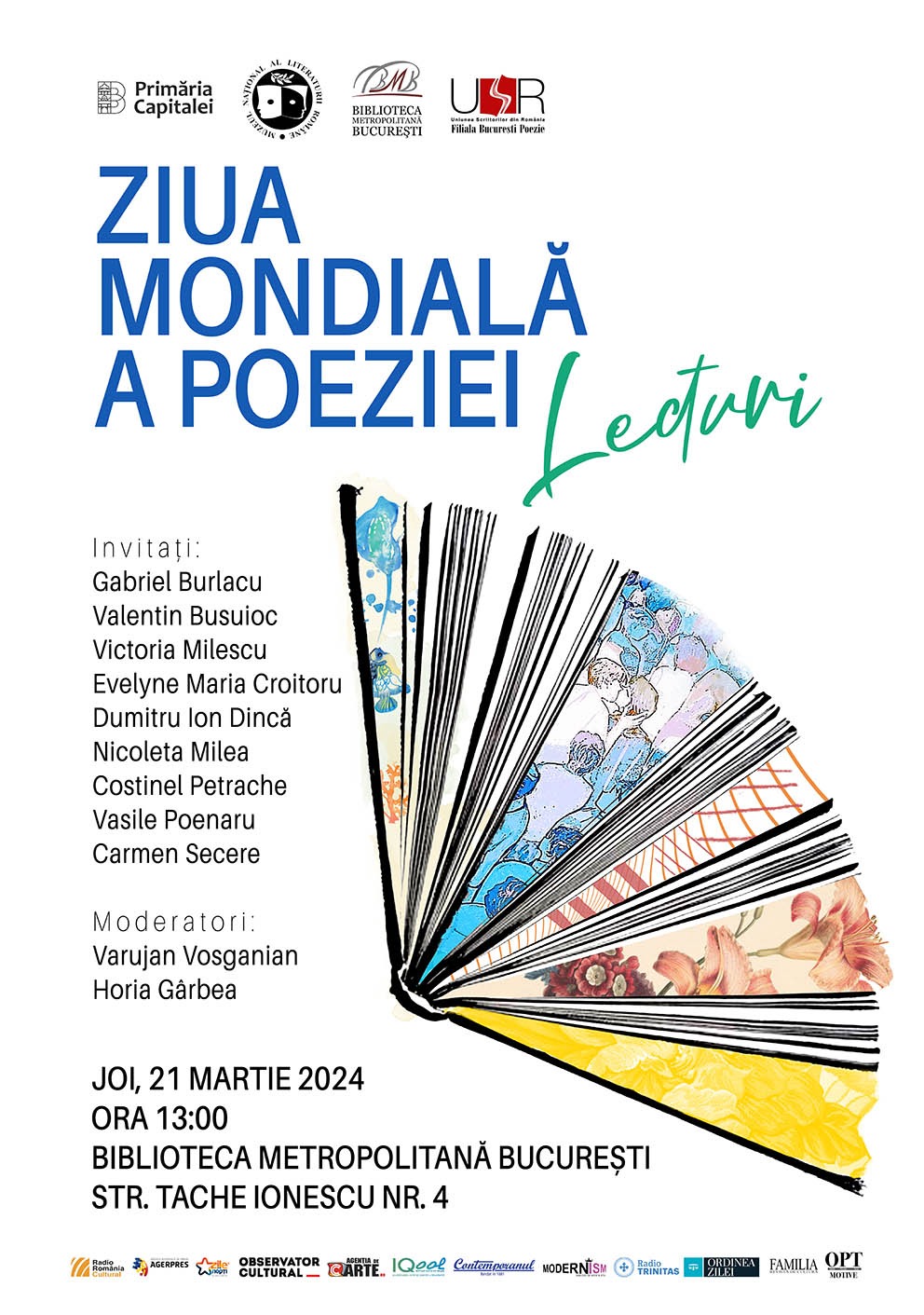 Muzeul Național al Literaturii Române, în parteneriat cu Biblioteca Metropolitană București și Uniunea Scriitorilor din România – Filiala București Poezie, vă invită joi, 21 martie 2024, de la ora 13.00, la sediul Bibliotecii Metropolitane din Str. Tache Ionescu nr. 4, la un eveniment dedicat Zilei Mondiale a Poeziei. AgențiadeCarte.ro este partener media al evenimentului.