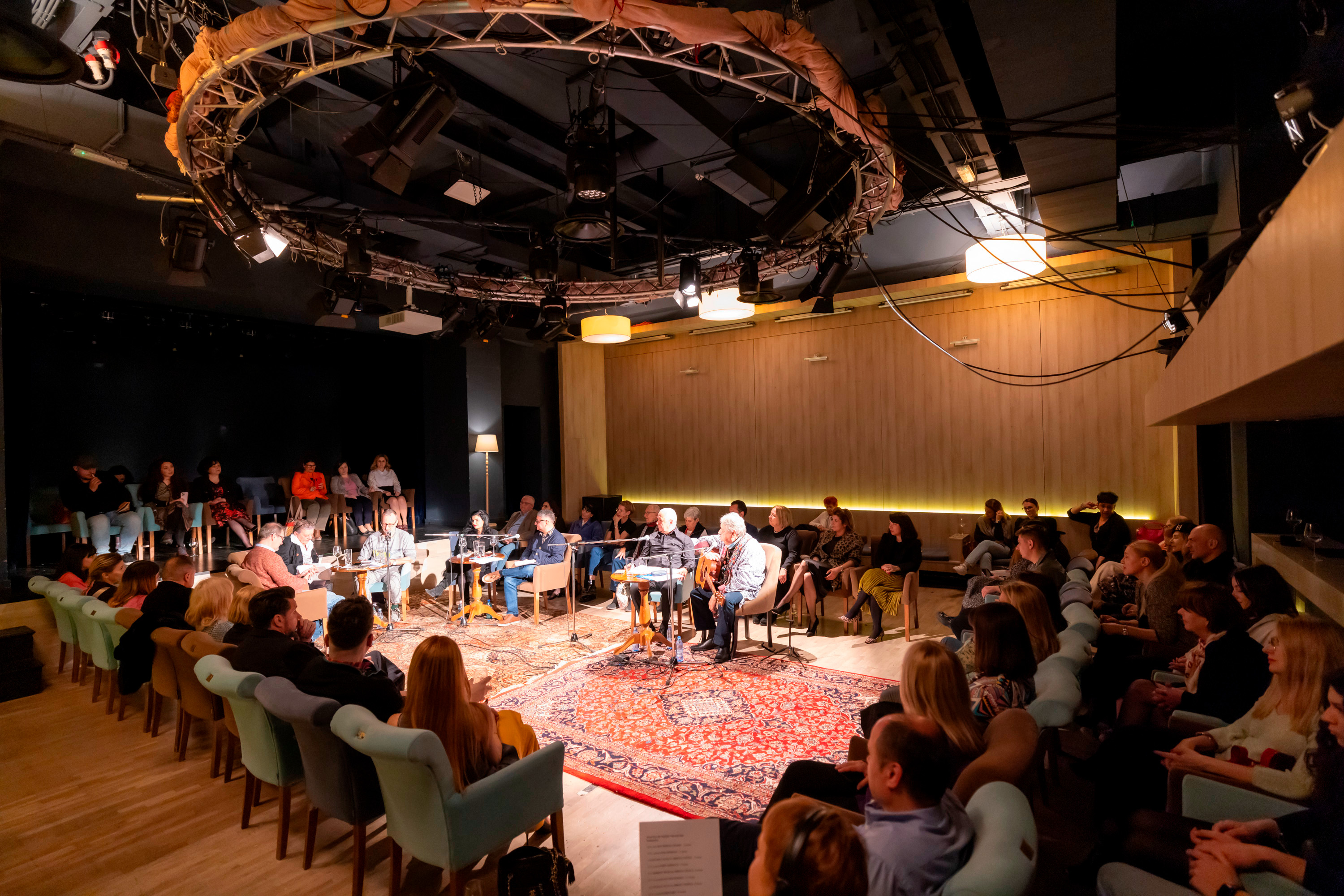 Dan Mircea Cipariu:Noaptea de Poezie se pregătește de o ultimă lectură muzicală a lui Mircea Vintilă. Spectatorii din sufrageria Teatrelli vor primi, curând, ”o felie de poezie”, imaginată vizual de Mihai Zgondoiu, pornind de la un vers scris de poeții prezentați în acest spectacol. Poeți, muzicieni, spectatori și echipele de organizare vom continua dialogurile și lecturile noastre interioare la un pahar de vin, cinstit de Jidvei.Mulțumim echipei Teatrelli și CREART și colegilor din emisia Radio România Cultural.”