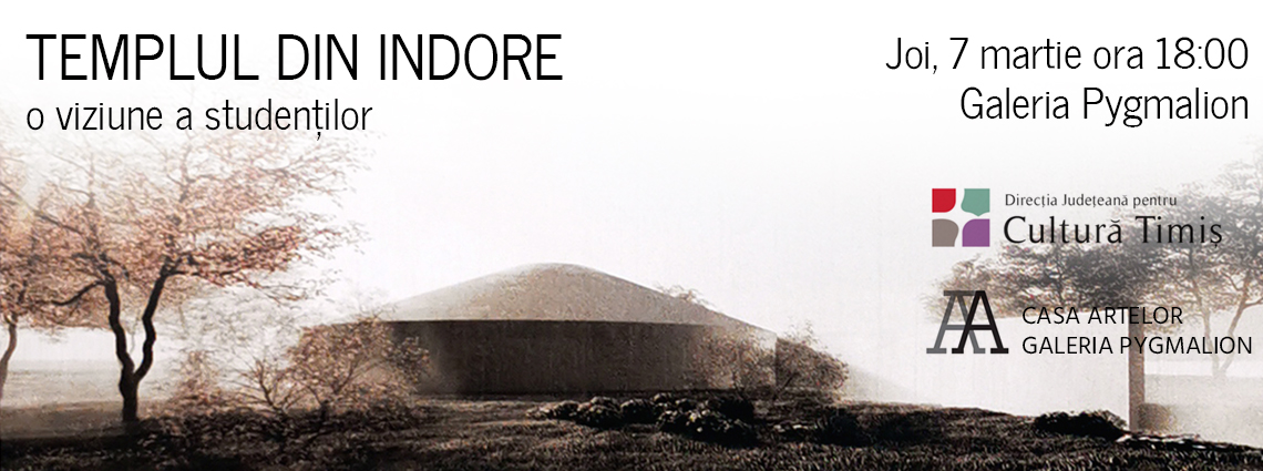 ”Templul din Indore”. Un edificiu de cult care ar fi trebuit să poarte semnătura lui Constantin Brâncuși, dar care a rămas doar o legendă în conștiința colectivă. Acest spațiu dedicat rugăciunii și meditației a devenit tema unui exercițiu pentru studenții de la Facultatea de Arhitectură din cadrul Universității de Arhitectură și Urbanism „Ion Mincu” din București. Într-o singură zi, fără îndrumare de atelier, ei au pus la punct o serie de proiecte prin care au răspuns provocării de a-și imagina, prin filtrul propriu, o posibilă arhitectură a Templului din Indore. Proiectele astfel realizate pot fi văzute, vreme de aproape o lună, pe simezele galeriei Pygmalion din Timișoara.