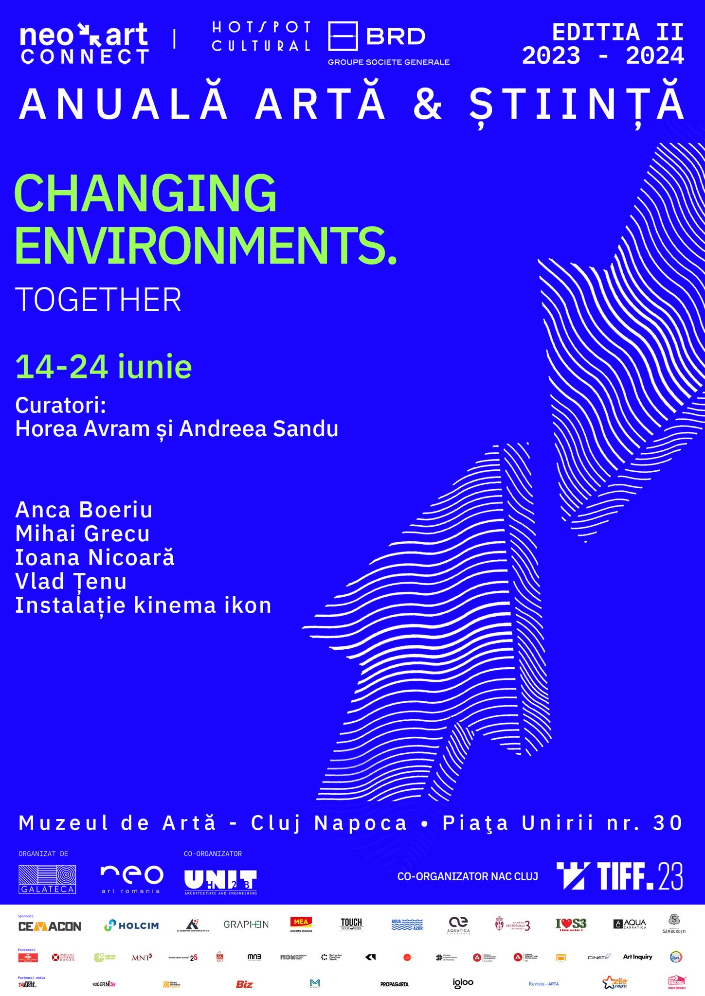 Curatorii Changing environments. Together sunt Horea Avram și Andreea Sandu, care este și fondatoarea NAC, iar artiștii invitați la Cluj sunt Anca Boeriu, Mihai Grecu, Ioana Nicoară, Vlad Țenu și kinema ikon.