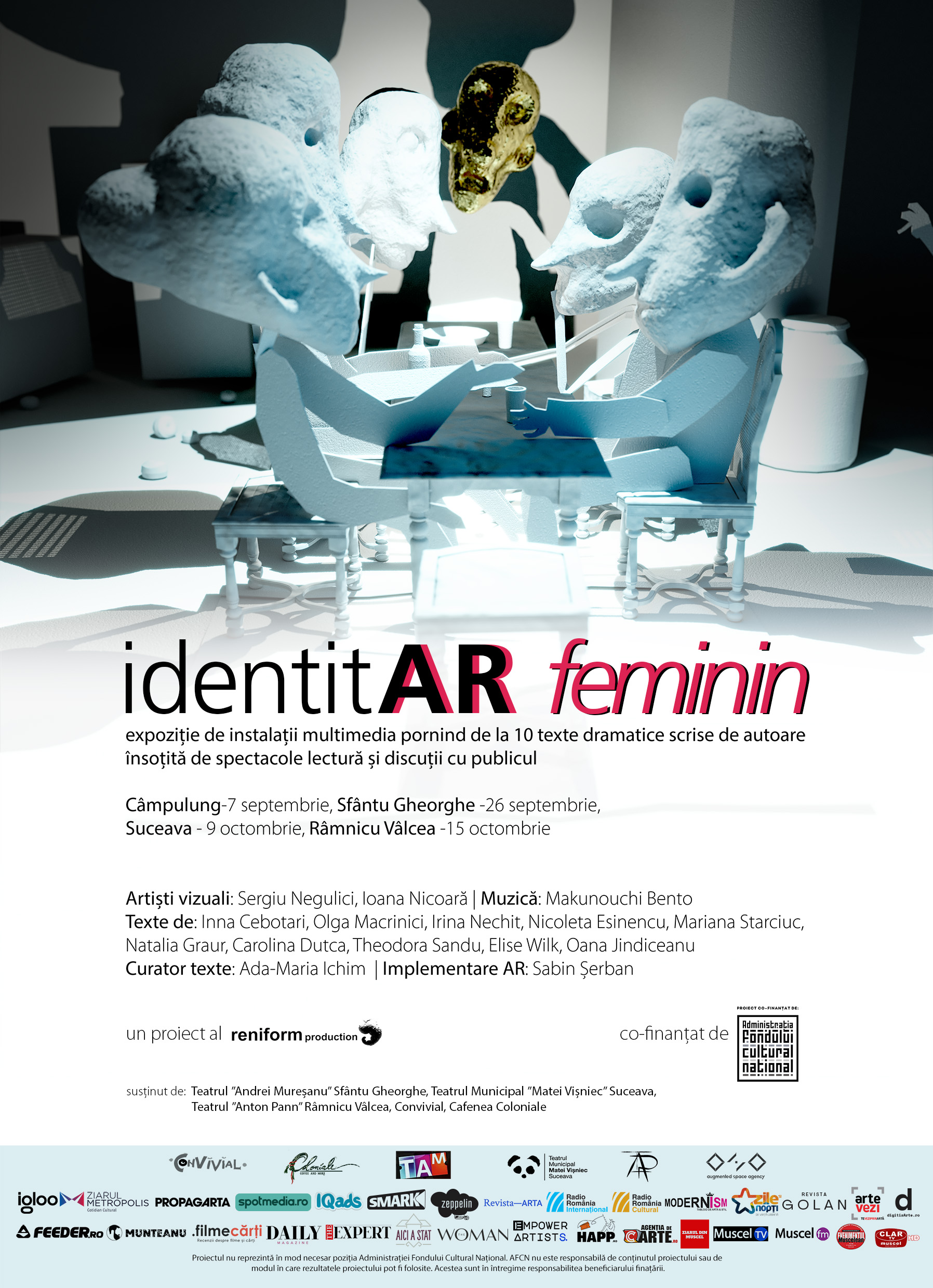 Expoziția itinerantă “IdentitAR feminin”, un proiect digital multimedia, cu animații 3D și realitate augmentată, însoțit de muzică, sunet, spectacole lectură și dezbateri, va fi prezentată în patru orașe din România: Câmpulung Muscel, Sfântu Gheorghe, Suceava și Râmnicu Vâlcea. Turneul debutează pe 7 septembrie, într-un spațiu alternativ – Convivial, din Câmpulung Muscel.