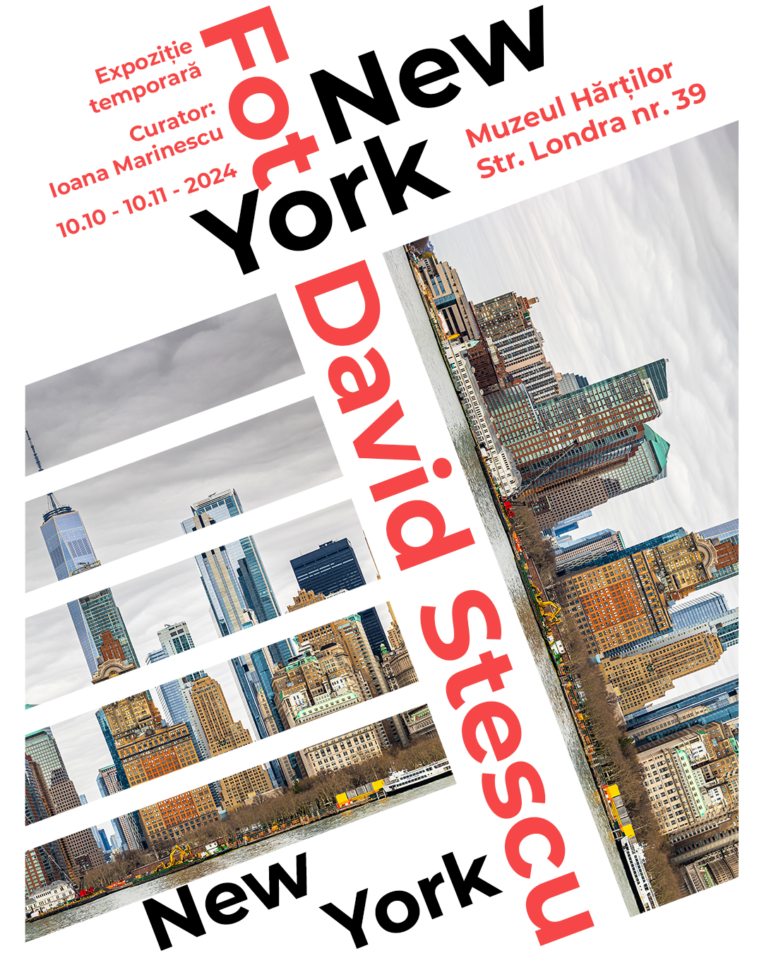 Muzeul Hărților vă invită joi, 10 octombrie 2024, de la ora 18:00, la vernisajul expoziției „New York, New York!” realizată de David Stescu, un tânăr fotograf de 18 ani cu autism şi curatoriată de Ioana Marinescu.