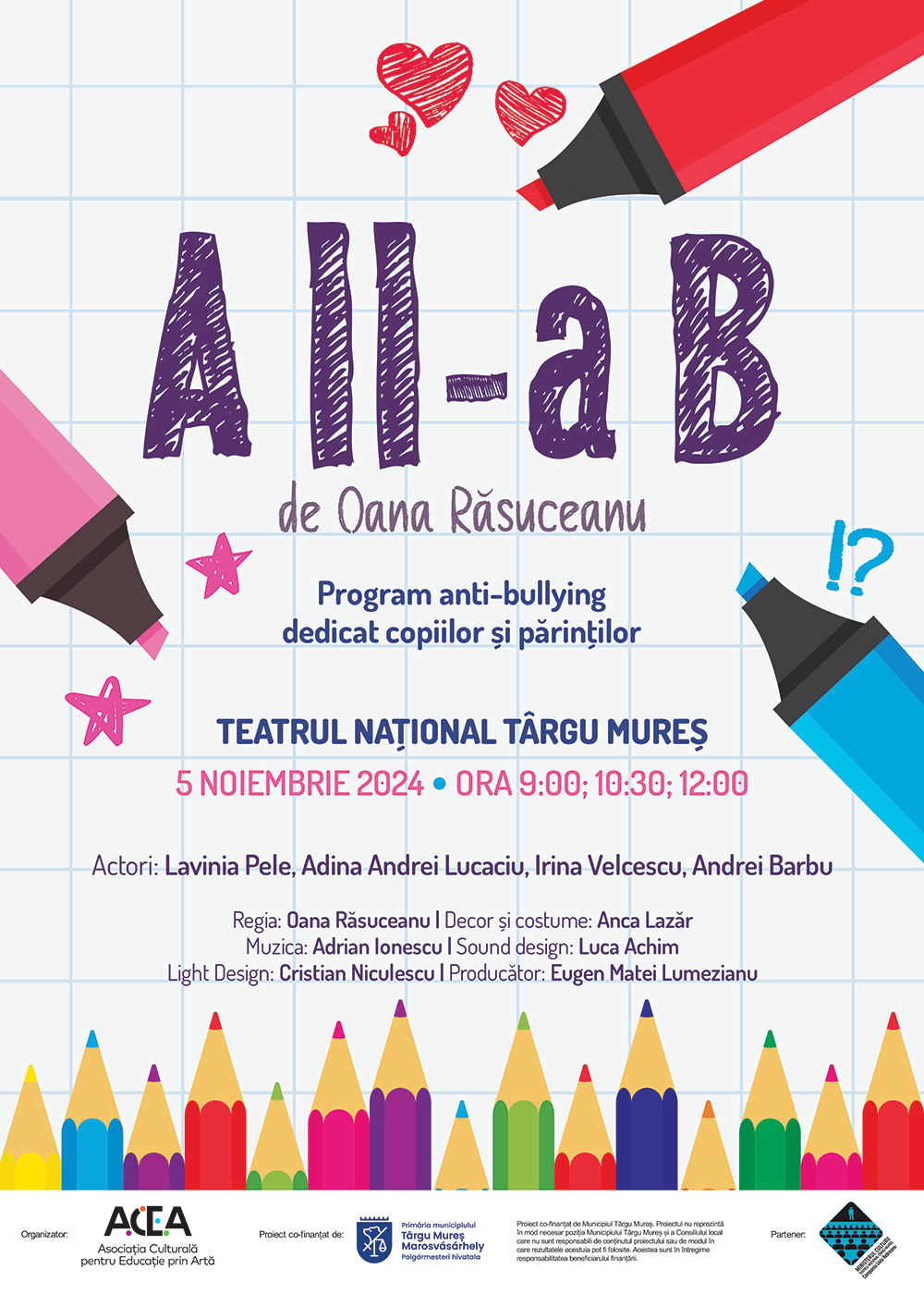 Pe 5 noiembrie 2024, Asociația Culturală pentru Educație prin Artă (ACEA) prezintă la Târgu Mureș spectacolul „A II-a B”, un proiect educațional dedicat conștientizării bullying-ului și promovării empatiei în rândul elevilor din clasele primare.