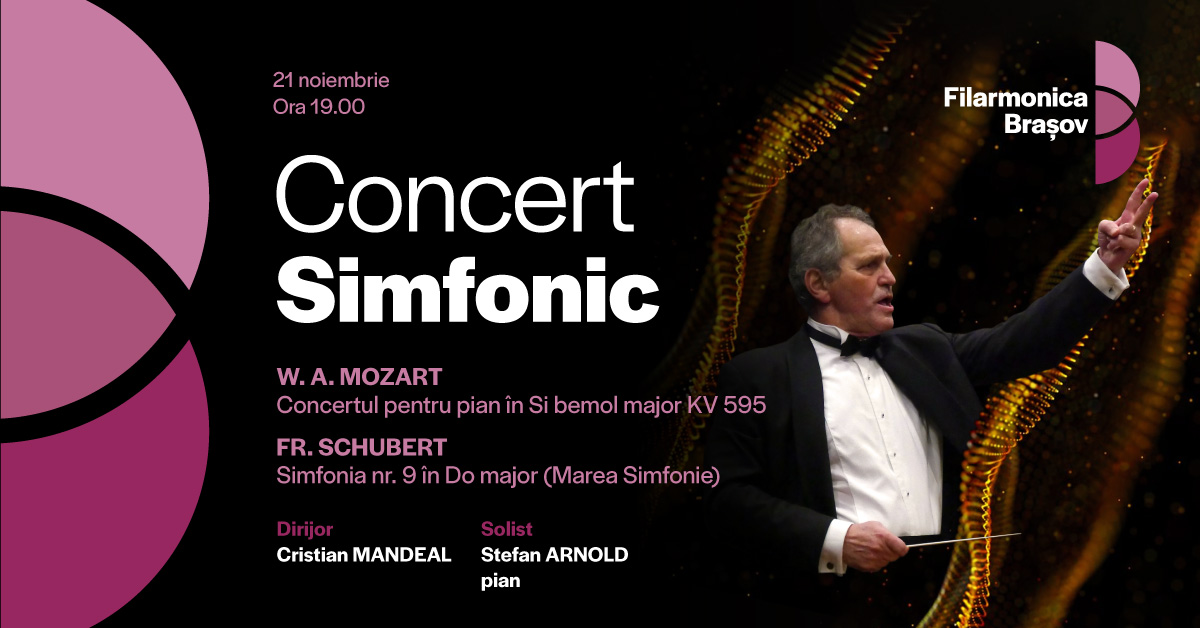Alături de Orchestra Filarmonicii Brașov, pe scena Sălii Patria revin doi mari artiști: dirijorul de renume Cristian Mandeal și pianistul Stefan Arnold, un reper al excelenței în muzica clasică europeană.