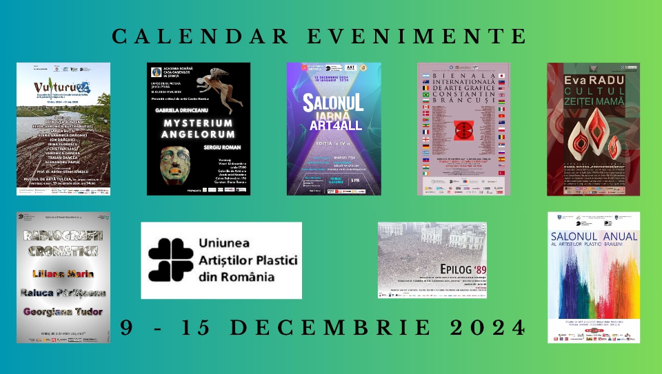 La parterul Muzeului de Artă Tulcea (str. Grigore Antipa, nr. 2), de la ora 14:00, Complexul Muzeal de Patrimoniu Cultural Nord Dobrogean al Institutului de Cercetări Eco-Muzeale „Gavrilă Simion” Tulcea, Uniunea Artiștilor Plastici din România (Filiala București și Filiala Tulcea) și Dr. Adrian Balaban vă invită să vizitați expoziția colectivă de artă plastică intitulată „Vulturu 24”. Acest eveniment încununează activitatea artiștilor români care au participat în anul 2024 la Tabăra de Creație Artistică „Maliuc”, ediția a IV-a: Brîndușa Bontea, Elida Veronica Buftei (Butuc), Sanda Buțiu, Elena Gabriela Drăghici, Ion Drăghici, Irina Florescu, Cristina Iliaș, Veronica Oancea, TraianOancea, Alexandru Papuc. Invitatul evenimentului este prof. dr. Adrian-Silvan Ionescu, istoric și critic de artă. În cadrul expoziției vor fi valorificate lucrări de grafică și pictură care surprind sau recompun spațiul mirific al Deltei Dunării.