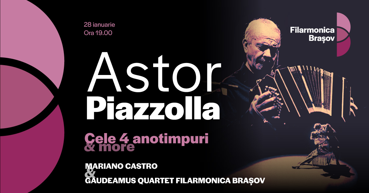 În acest concert, Cvartetul Gaudeamus al Filarmonicii Brașov, format din Lucia Neagoe (vioara I), Raluca Irimia (vioara a II-a), Leona Varvarichi (violă) și Ștefan Neagoe (violoncel) va urca pe scenă alături de pianistul argentinian originar din Buenos Aires Mariano Castro. Împreună, aceștia vor aduce la viață spiritul vibrant al lui Piazzolla, completat de lucrări celebre din repertoriul tango-ului și al muzicii latino-americane.