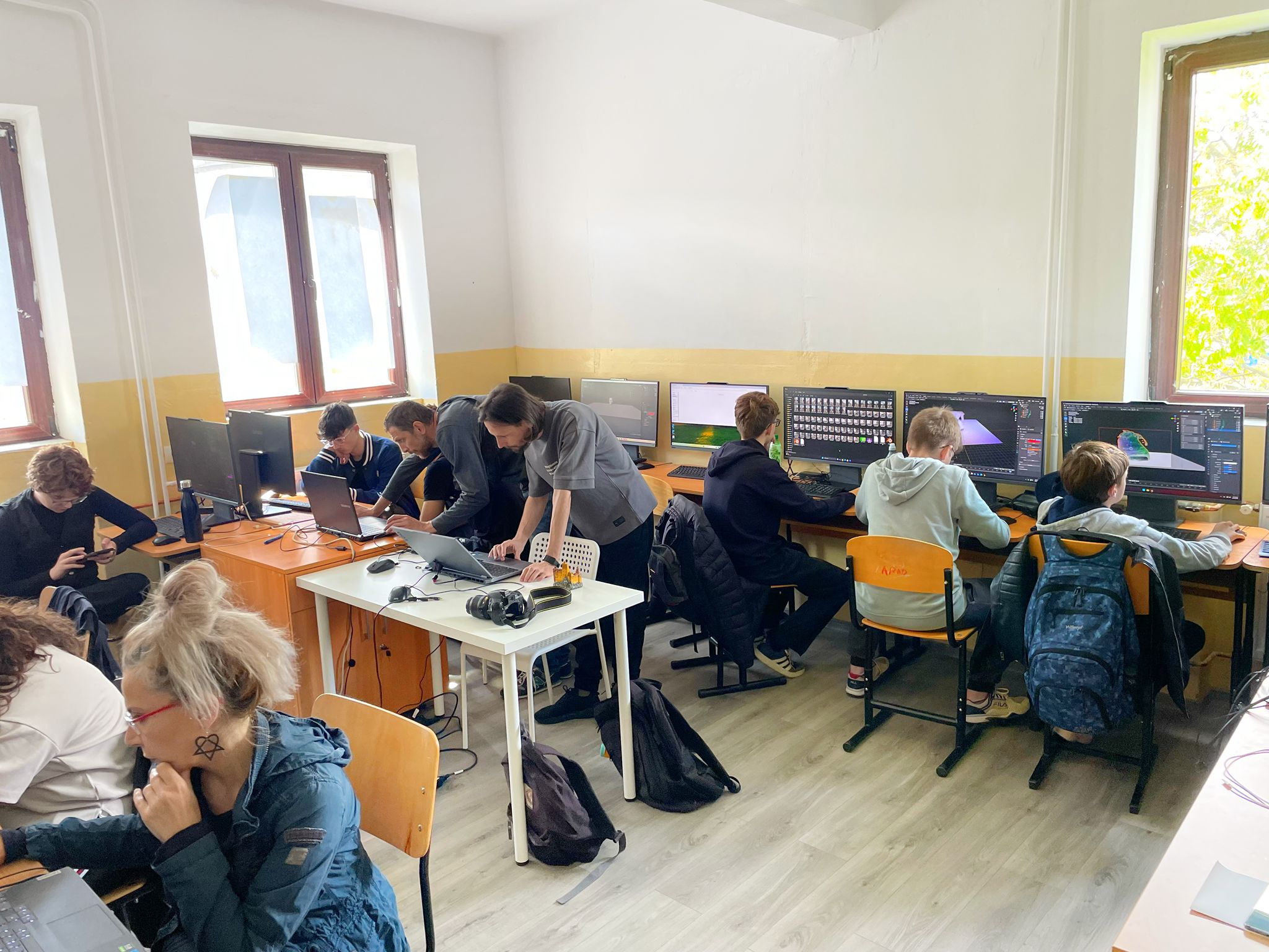 Marius Jurca a propus un atelier interactiv, în care elevii au trecut de la noțiuni teoretice la aplicații concrete, lucrând la propriile proiecte digitale. Activitatea s-a finalizat cu prezentarea lucrărilor 3D realizate de participanți, care au explorat teme personale, simboluri vizuale și tehnici de randare variate.