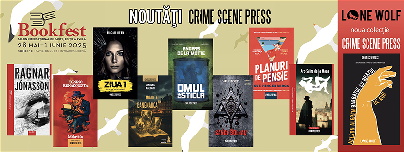 CRIME SCENE PRESS este sursa numărul 1 de romane mystery & thriller, fiind singura editură din România cu un program dedicat în exclusivitate literaturii de acest gen. Website: crimescenepress.ro