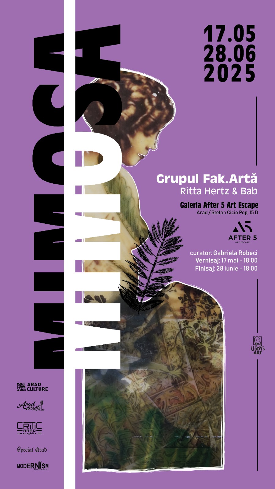 Iubitorii de artă sunt invitați să participe la vernisajul expoziției „MIMOSA” semnată de Grupul Fak. Artă, care va avea loc sâmbătă, 17 mai 2025, începând cu ora 18:00, la Galeria After 5 Art Escape din Arad, Ștefan Cicio Pop, 15D (colț cu str. M. Eminescu) Grupul Fak. Artă reunește două artiste vizuale din Timișoara – Ritta Hertz (Andreea Henrietta Hertz) și Bab (Isabella Elena Becheanu) – care expun împreună în această formulă din anul 2023.