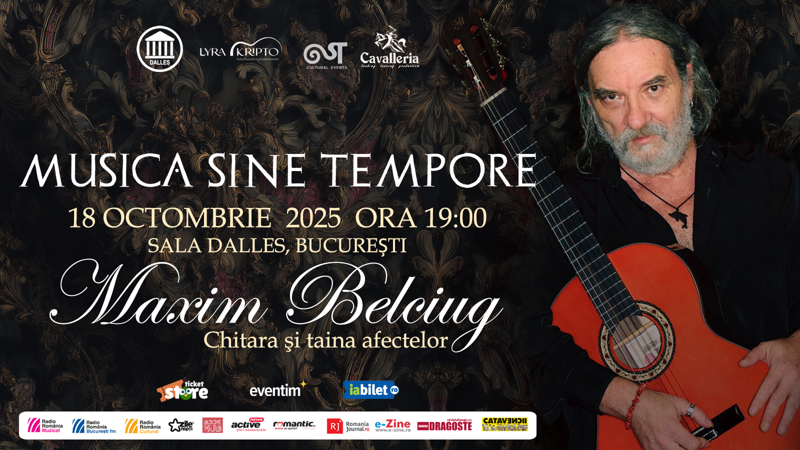 Seria de concerte debutează pe 18 octombrie 2025, cu recitalul extraordinar susținut de Maxim Belciug, unul dintre cei mai importanți chitariști români, care aduce la Sala Dalles un regal cu pagini semnate de Francesco da Milano, François Couperin, Jan Antonín Losy, Luis de Milan, Johann Sebastian Bach, Jean Philippe Rameau, Robert de Visée și Gaspar Sanz, într-o interpretare efervescentă și surprinzătoare. Căci Maxim Belciug abordează repertoriul baroc cu o familiaritate pe care doar un om al barocului și-ar permite-o: la el, muzica respiră liber și direct, în ritmul natural al sincerității totale, iar barocul ne apare mereu tânăr și deloc liniștit și ne învață despre frumos și perenitate.