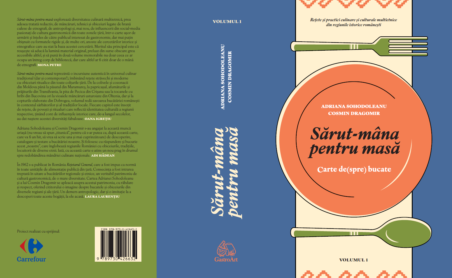 Editura GastroArt anunță lansarea unui nou titlu din colecția dedicată gastronomiei românești. Sărut-mâna pentru masă! Carte de(spre) bucate de Adriana Sohodoleanu și Cosmin Dragomir este rezumatul cercetării pe teren, în biblioteci și arhive a alimentației românești ca sumă a microidentităților regionale și etnice din ultimele câteva secole. Proiectul a fost posibil datorită susținerii Carrefour România.