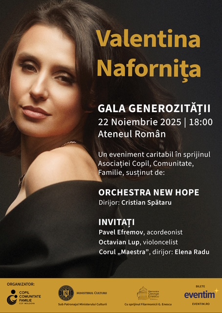 Pe 22 noiembrie, pe scena Ateneului Român, bucureștenii sunt invitați să descopere Gala Generozității, un eveniment emblematic de muzică și filantropie organizat de Copil Comunitate Familie Moldova (CCF Moldova).